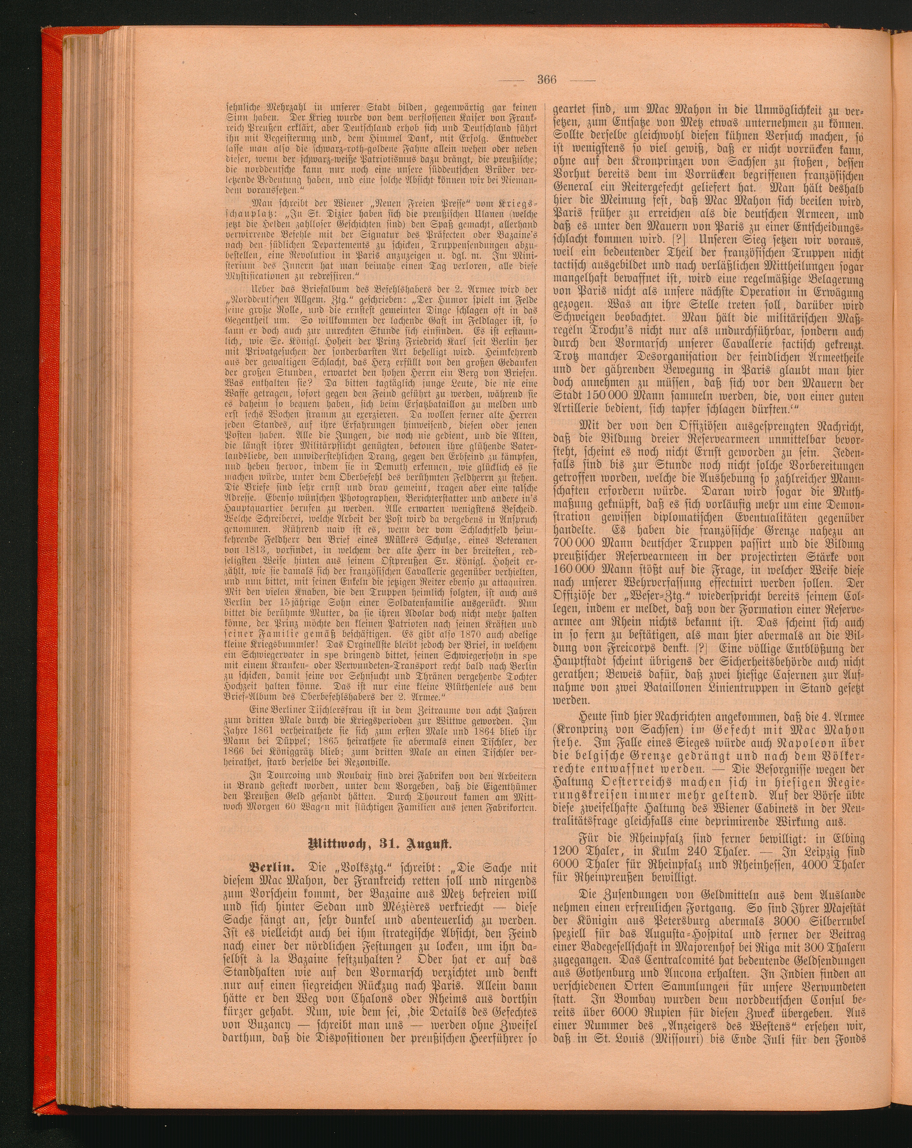 Mittwoch, 31. August.