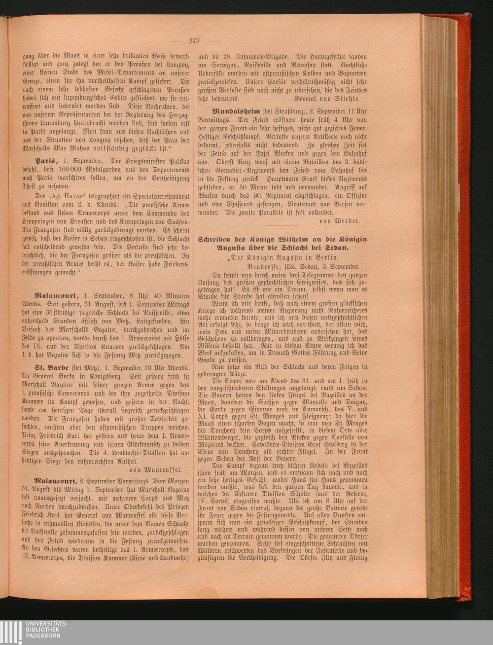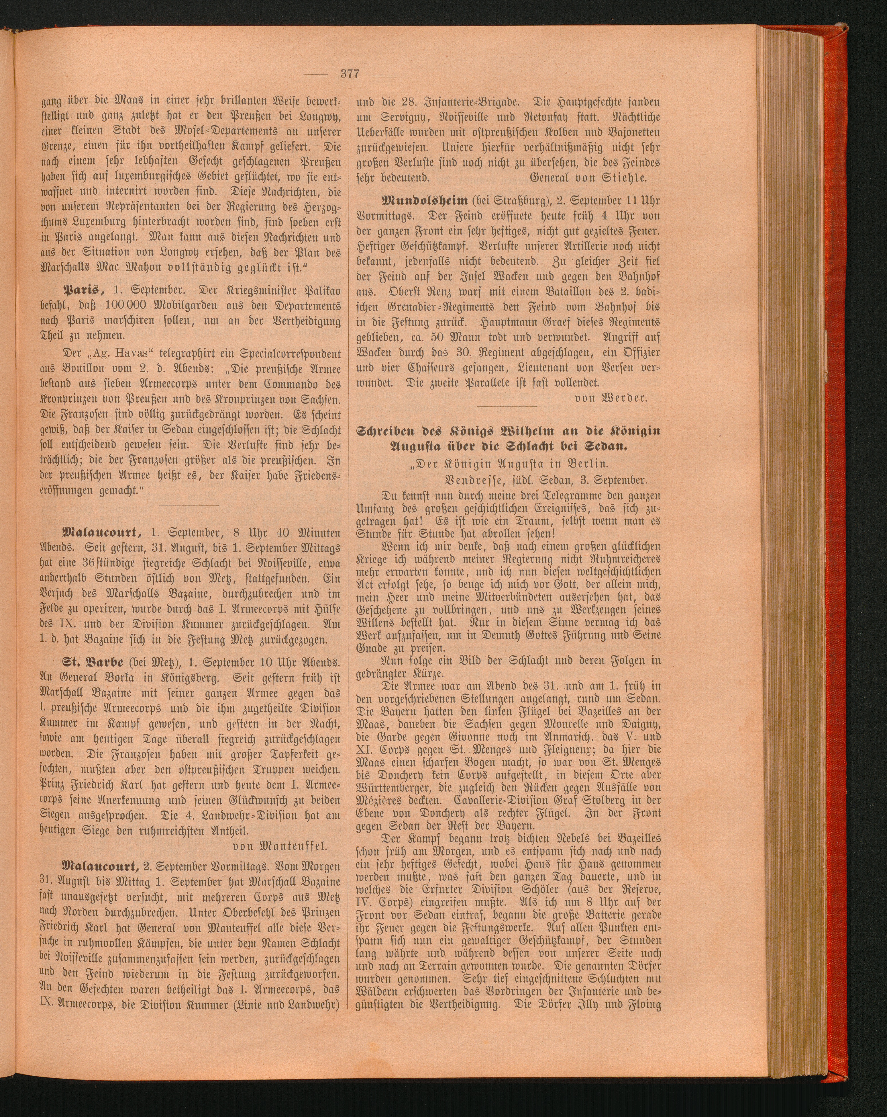 Schreiben des Königs Wilhelm an die Königin Augusta über die Schlacht bei Sedan.