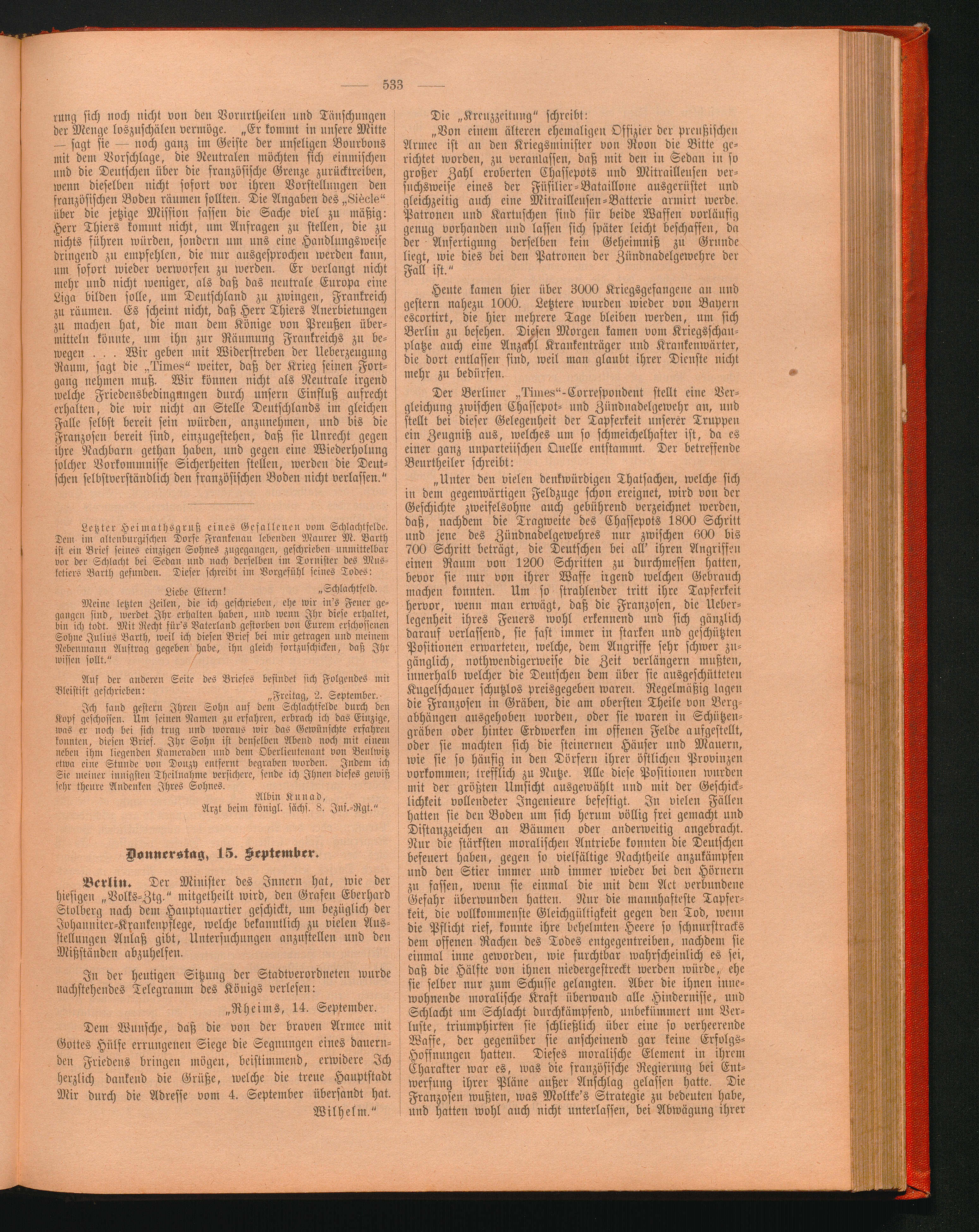 Donnerstag, 15. September.