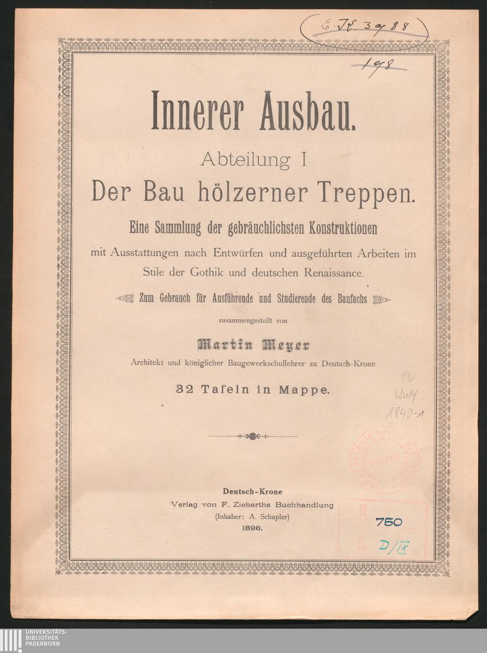 Abt. 1 (1896) Der Bau hölzerner Treppen : mit Ausstattungen nach Entwürfen und ausgeführten Arbeiten im Stile der Gothik und deutschen Renaissance