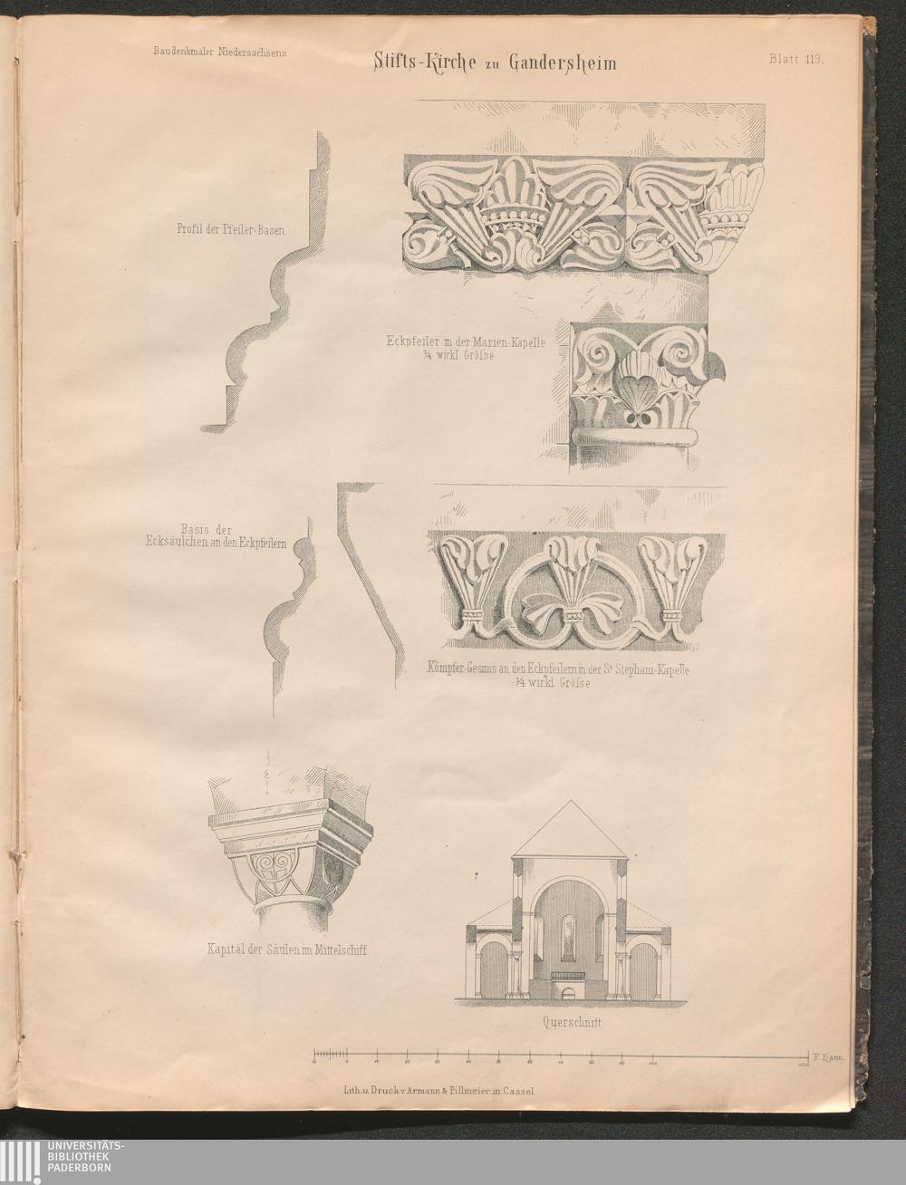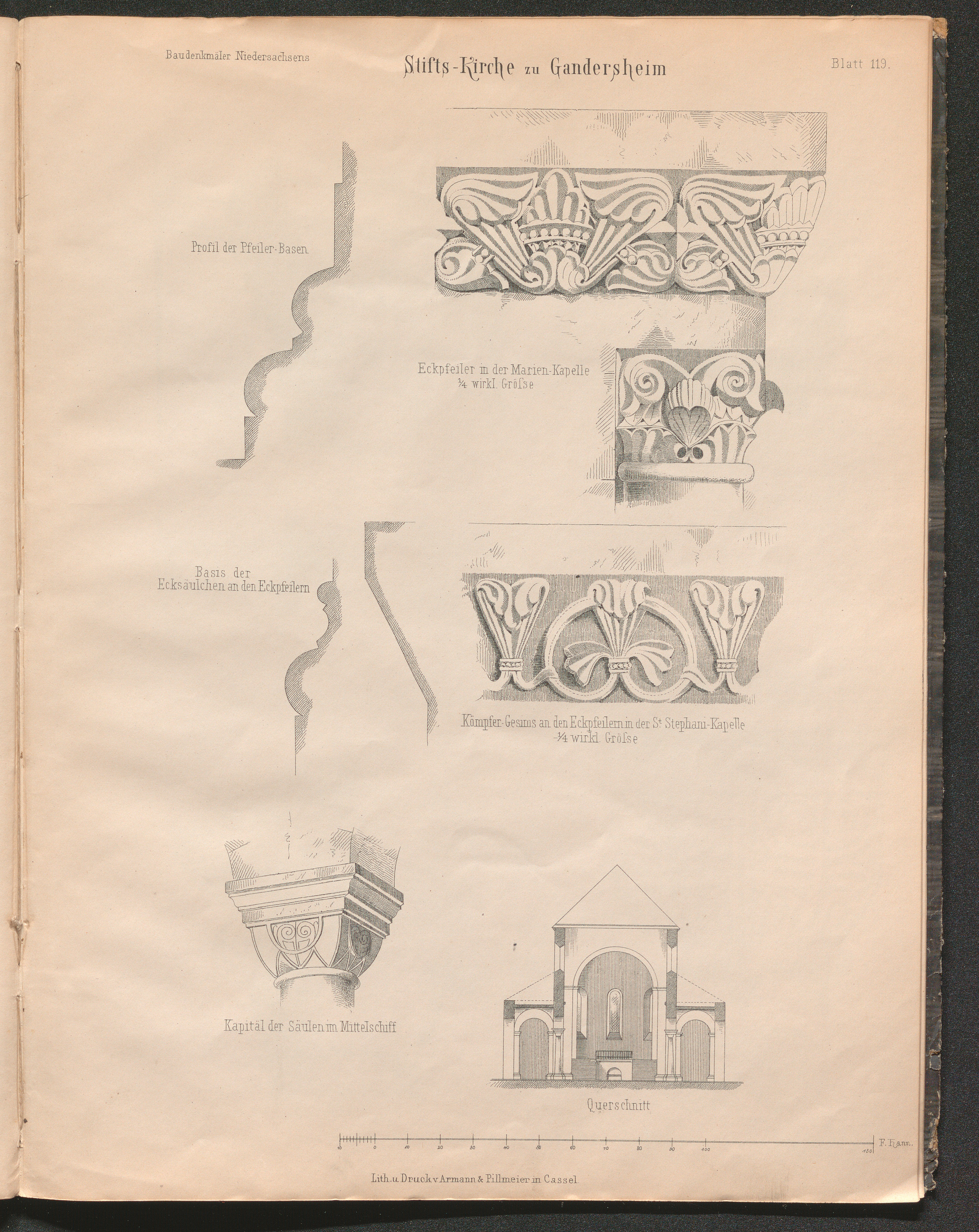 Die Stiftskirche zu Gandersheim. Mitgetheilt von K. Henrici, Stadtbaumeister zu Harburg. (Mit Abbildungen auf den Blättern 117 bis 121 und 6 in den Text gedruckten Holzschnitten.