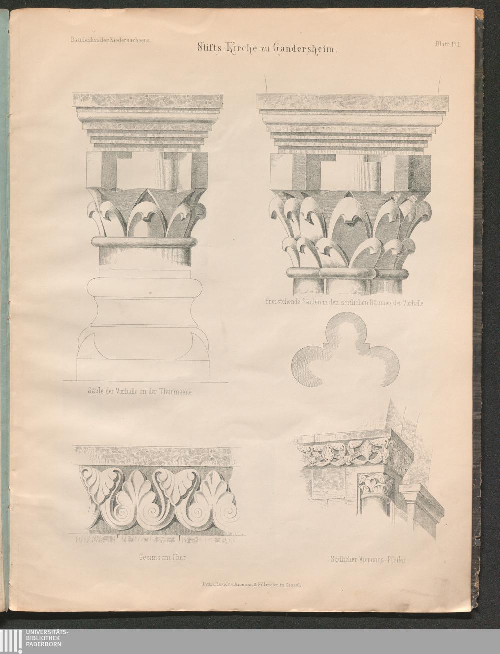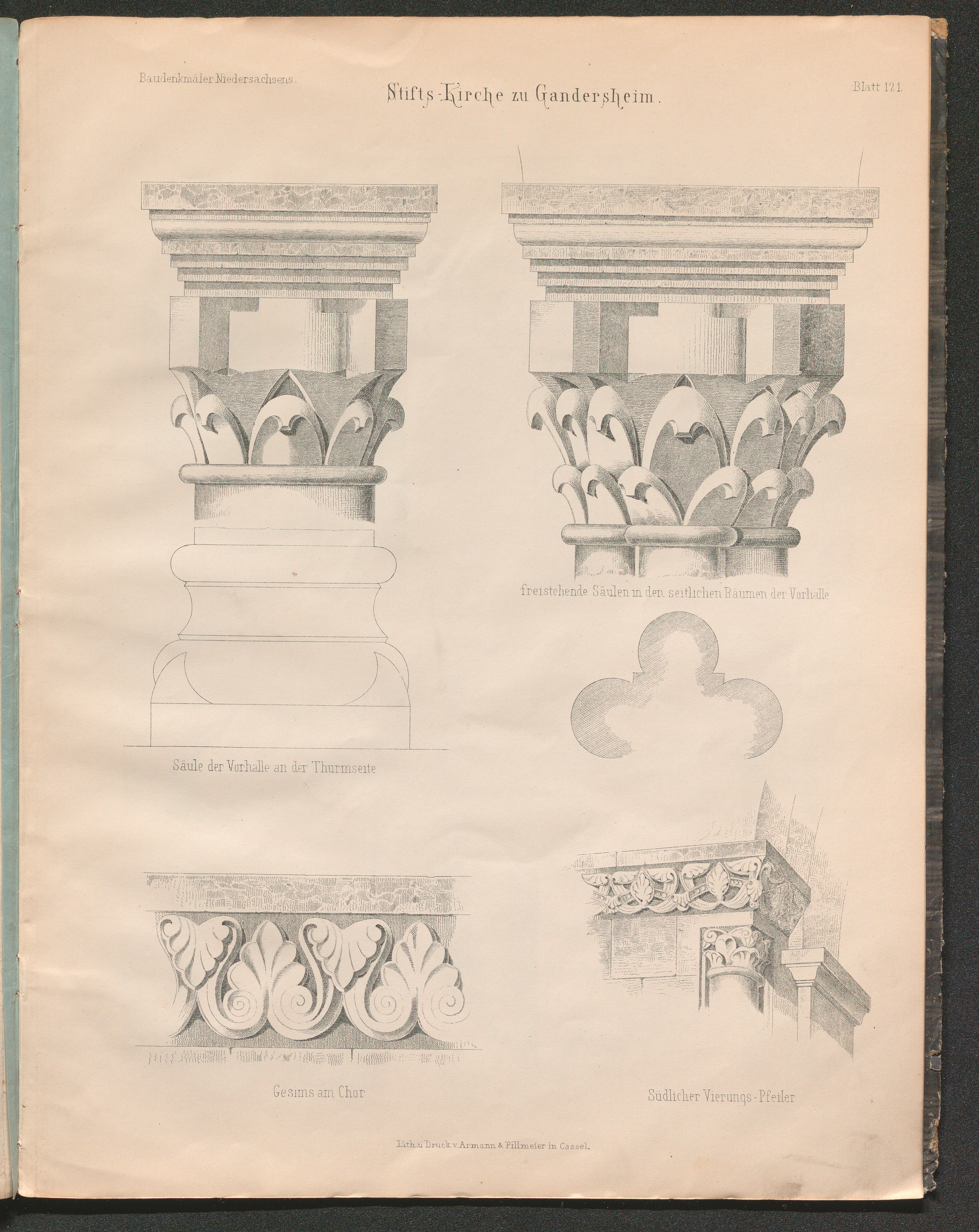 Die Stiftskirche zu Gandersheim. Mitgetheilt von K. Henrici, Stadtbaumeister zu Harburg. (Mit Abbildungen auf den Blättern 117 bis 121 und 6 in den Text gedruckten Holzschnitten.