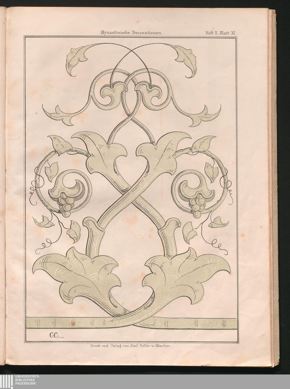 Byzantinische Dekorationen für Zimmermaler : Eine reiche Sammlung von vorbildlichen Muster-Entwürfen zur geschmackvollen inneren Verzierung von bürgerlichen Wohngebäuden der wohlhabenden Klasse im byzantinischen Style aus den besten Zeiten seiner Blüthe in Italien, Frankreich und Deutschland, mit beigegebenen Detailzeichnungen in größerem Maßstabe / Zusammengestellt von Carl Cramer, Dekorationsmaler