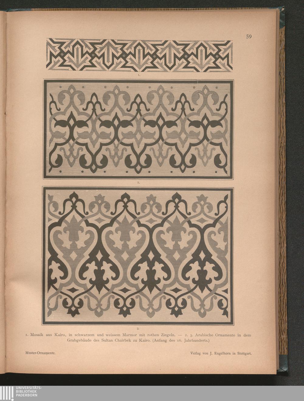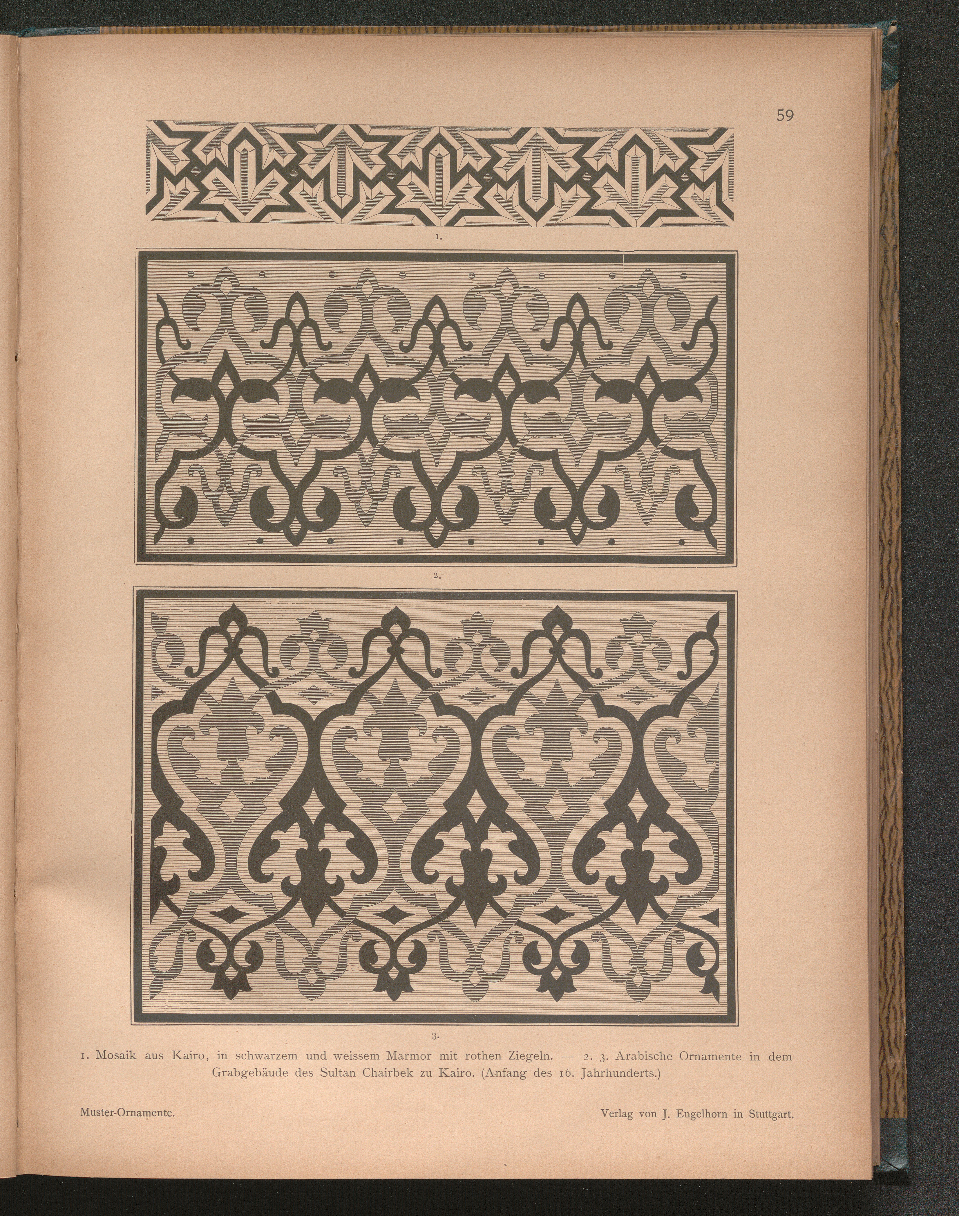 1. Mosaik aus Kairo, in schwarzem und weissem Marmor mit rothen Ziegeln. - 2. 3.[...]
