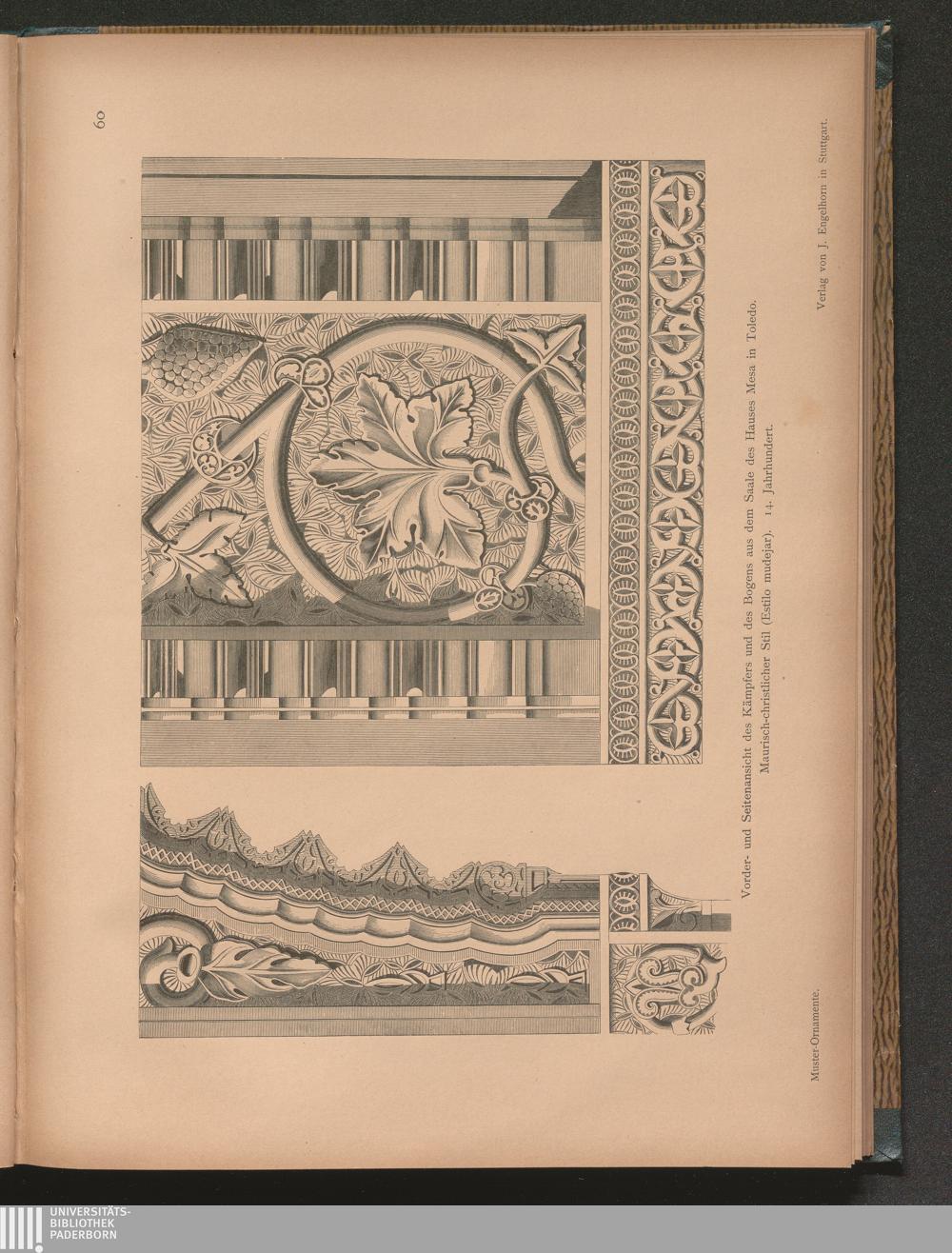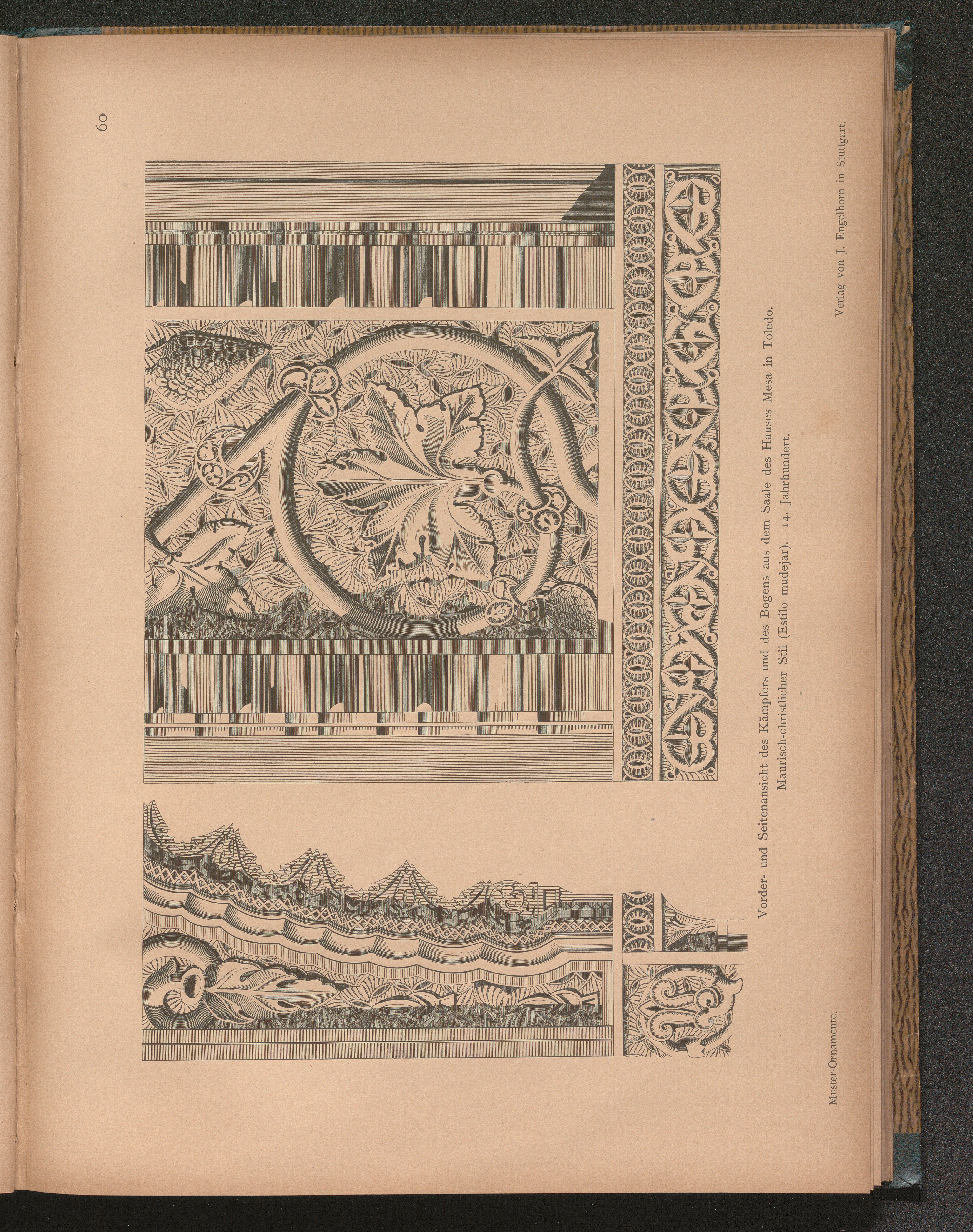Vorder- und Seitenansicht des Kämpfers und des Bogens aus dem Saale des Hauses Mesa[...]
