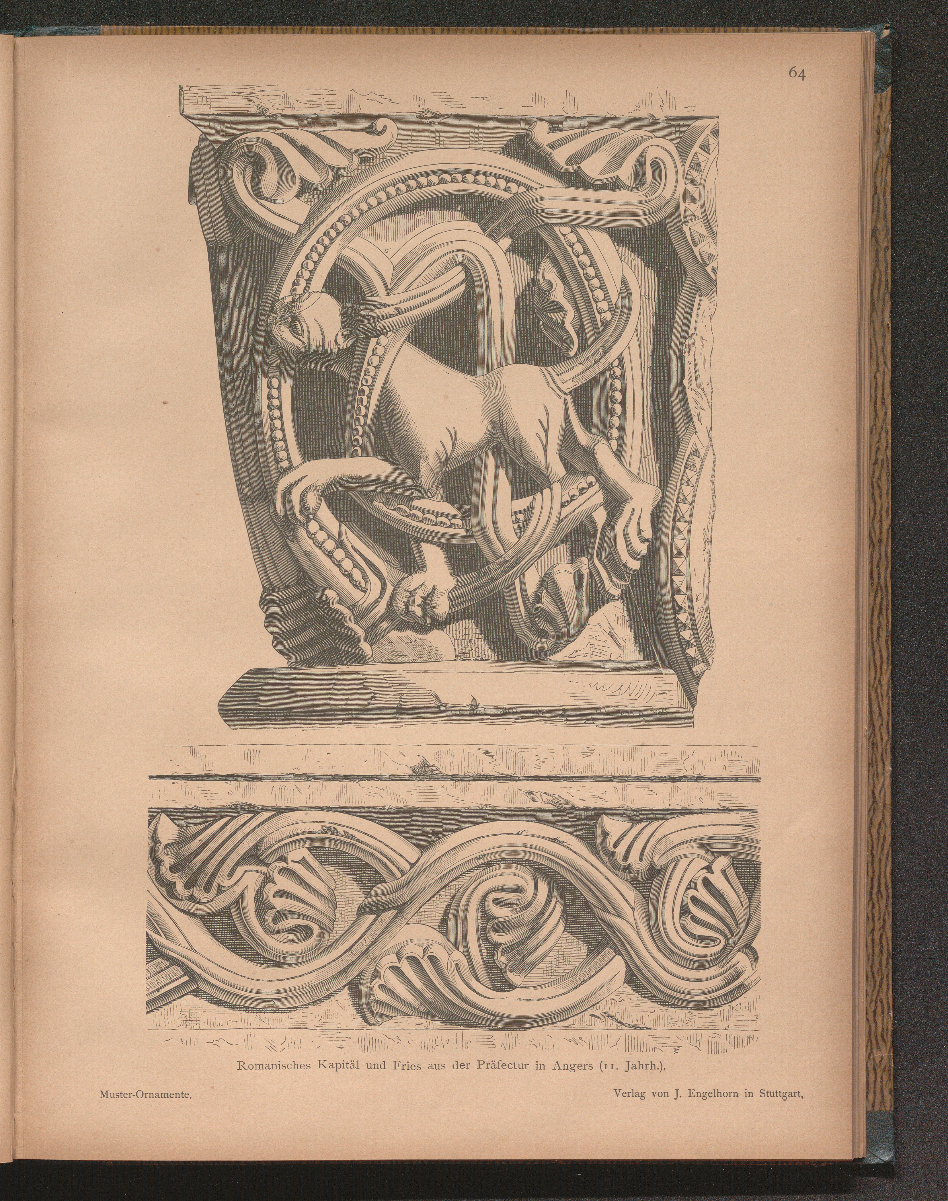 Romanisches Kapitäl und Fries aus der Präfectur in Angers (11. Jahrh.).