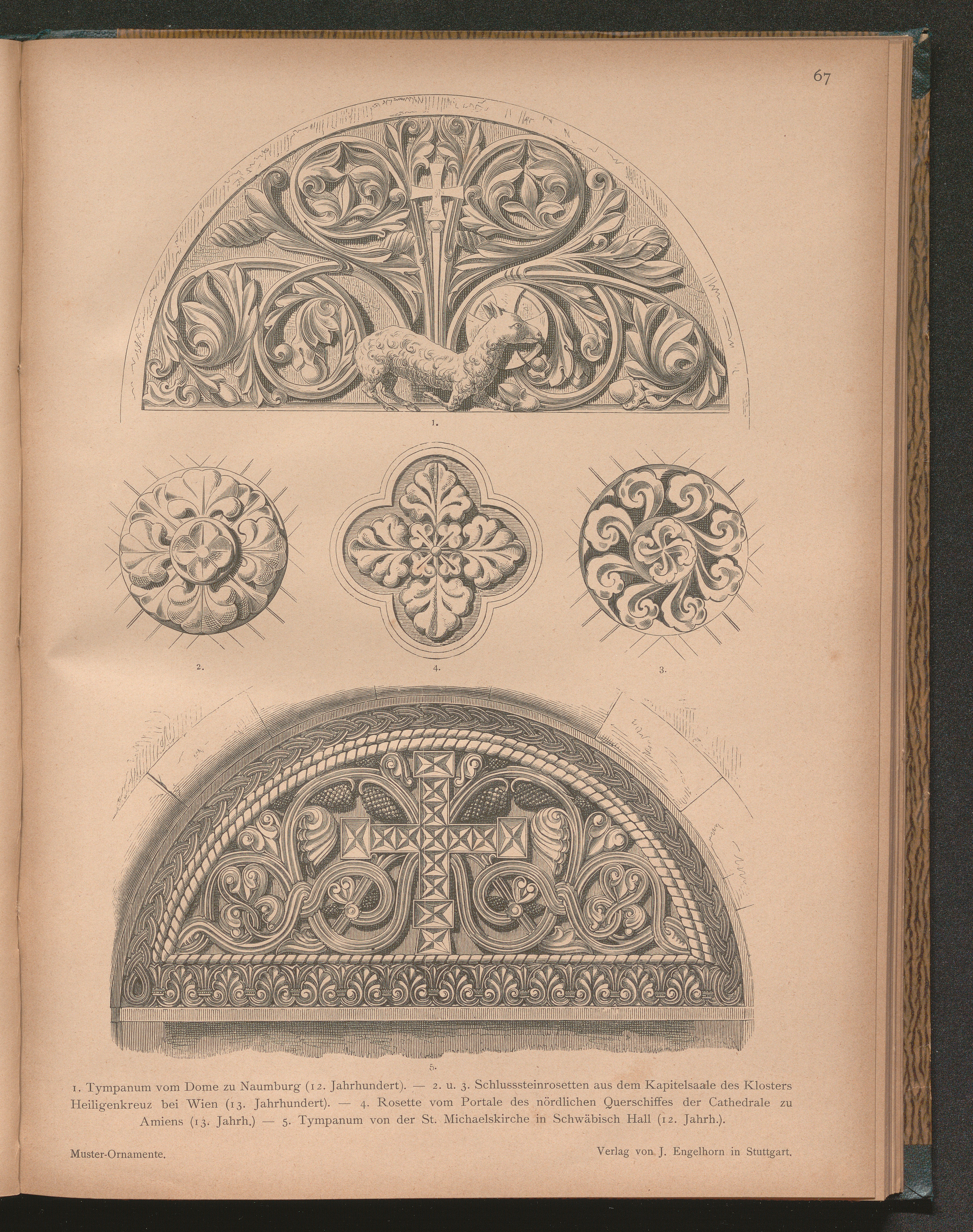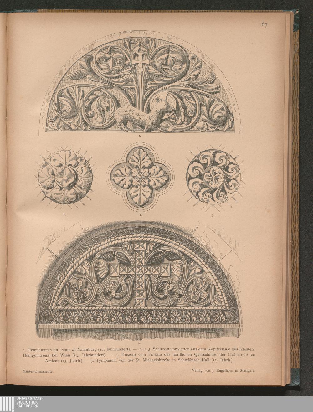1. Tympanum vom Dome zu Naumburg (12. Jahrhundert). - 2. u. 3. Schlusssteinrosetten[...]