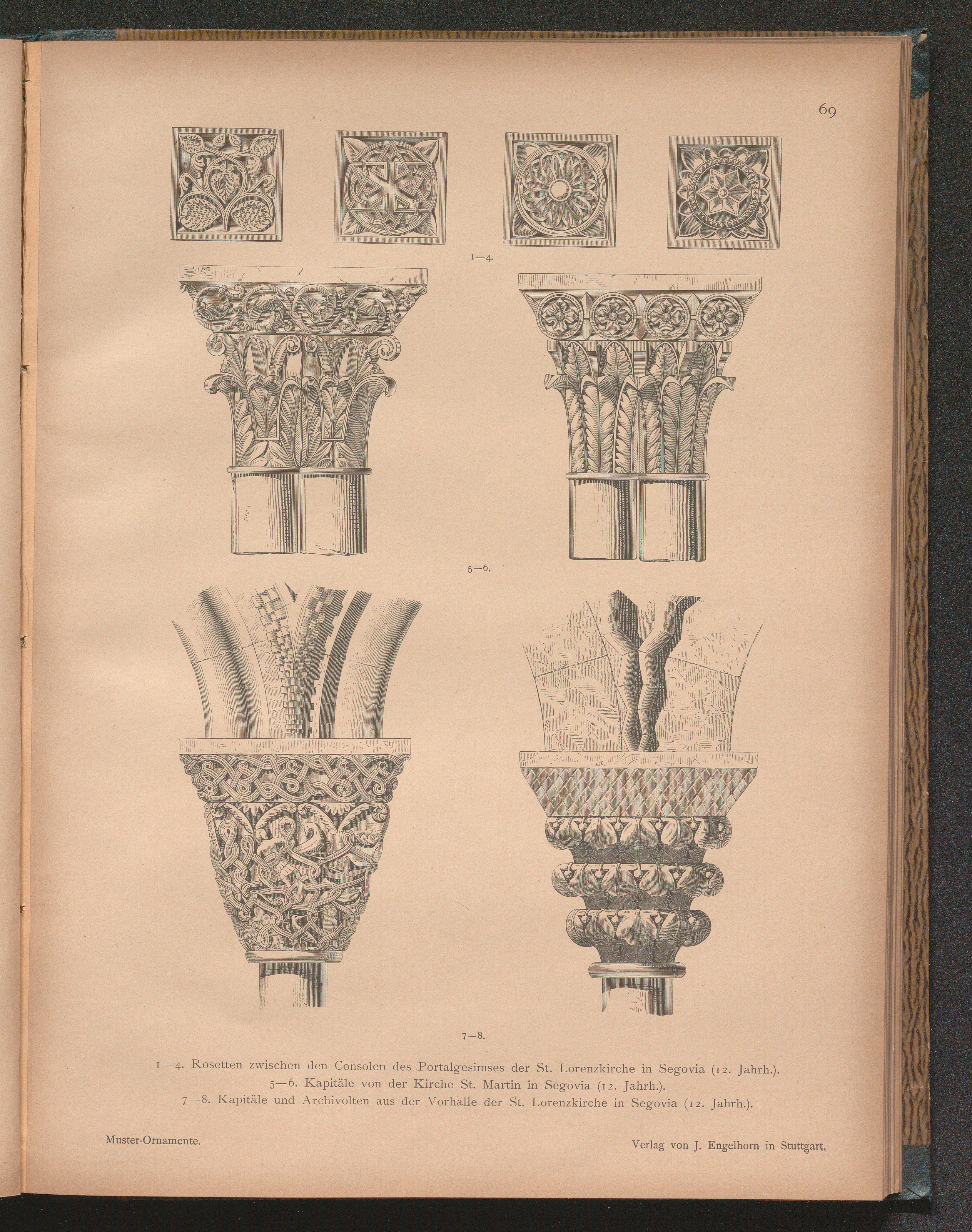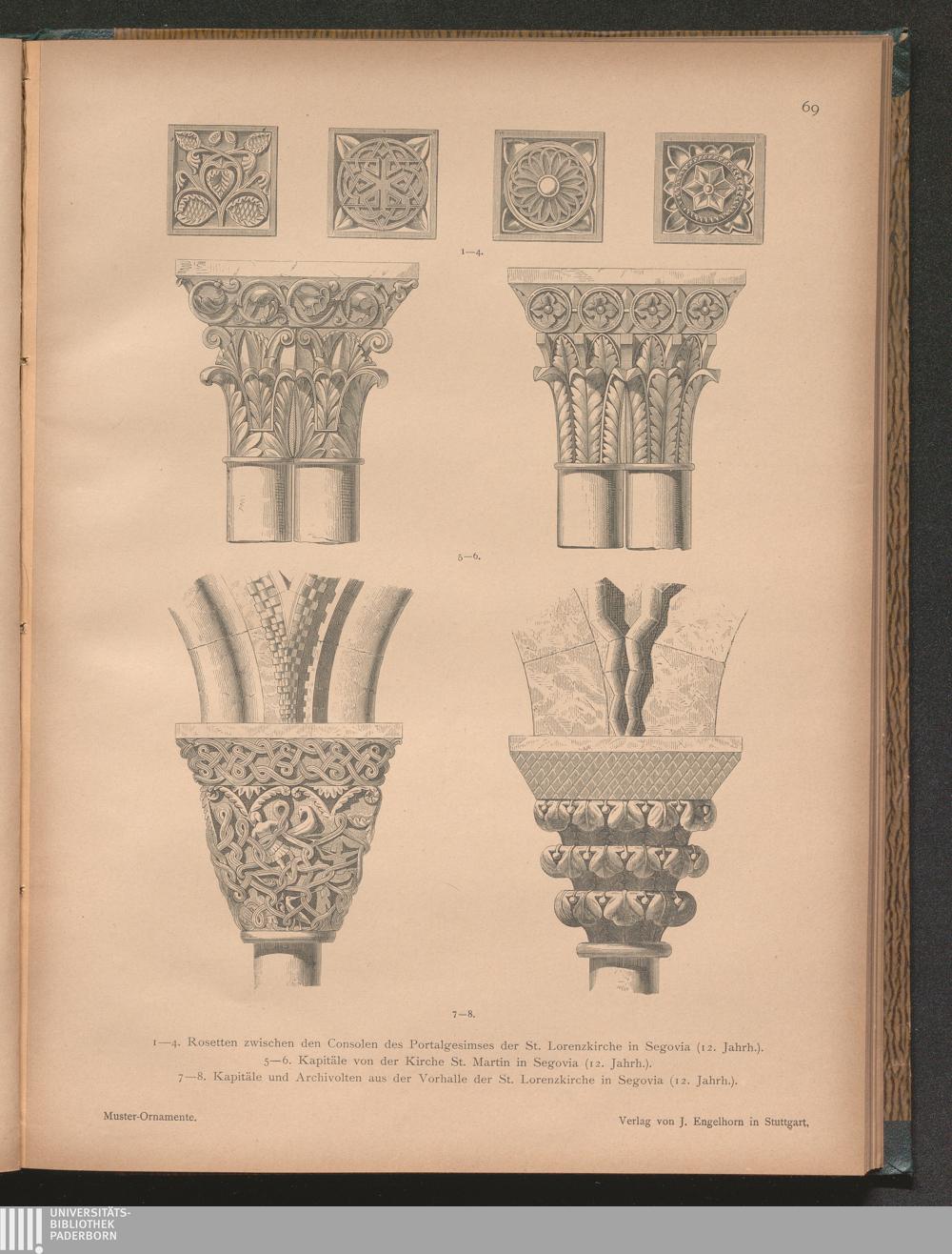 1 - 4. Rosetten zwischen den Consolen des Portalgesimses der St. Lorenzkirche in[...]