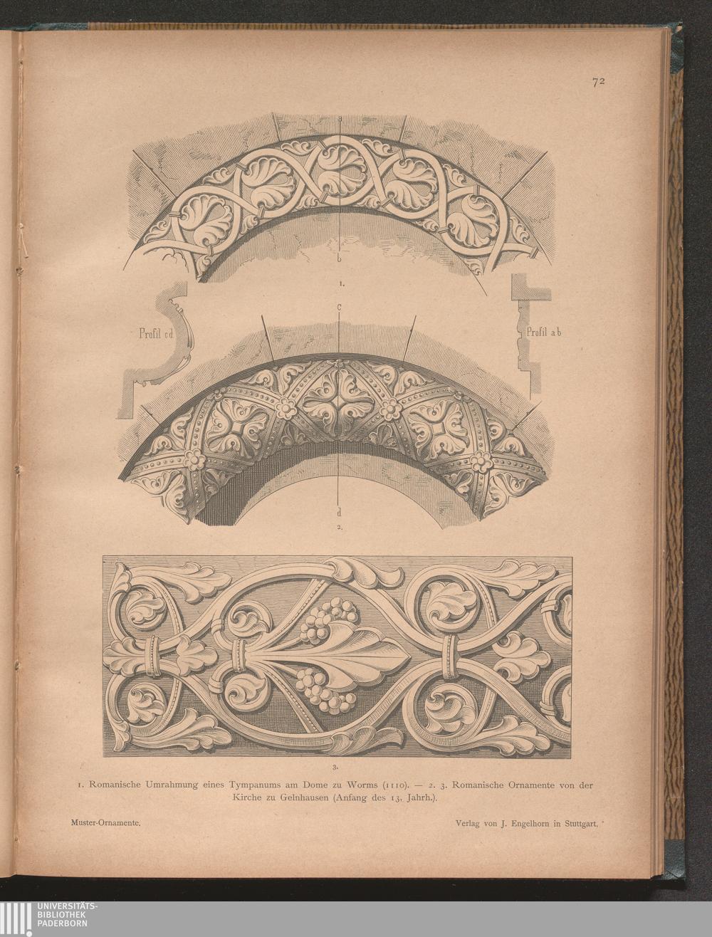 1. Romanische Umrahmung eines Tympanums am Dome zu Worms (1110). - 2. 3. Romanische[...]