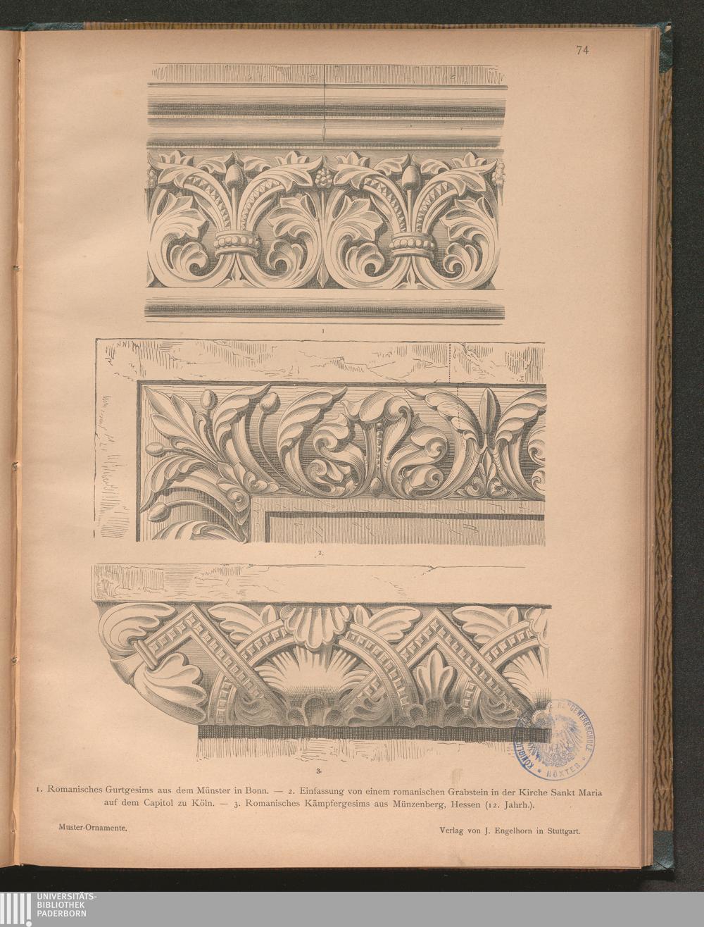 1. Romanisches Gurtgesims aus dem Münster in Bonn. - 2. Einfassung von einem romanischen[...]