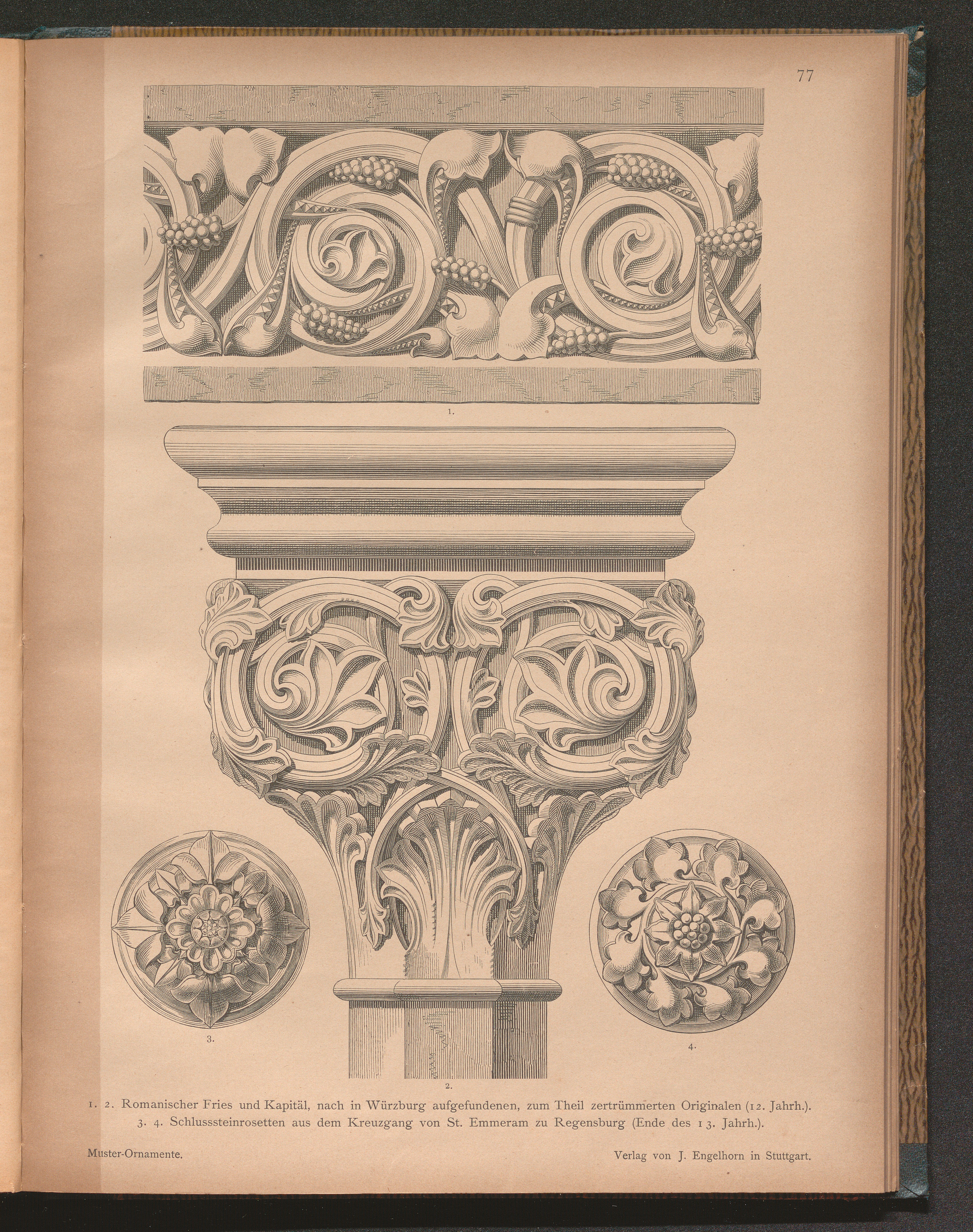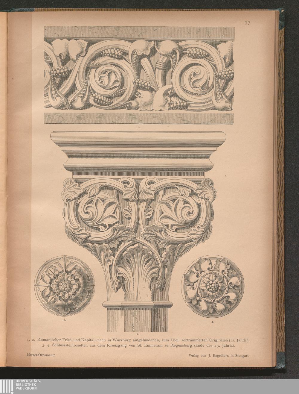1. 2. Romanischer Fries und Kapitäl, nach in Würzburg aufgefundenen, zum Theil zertrümmerten[...]