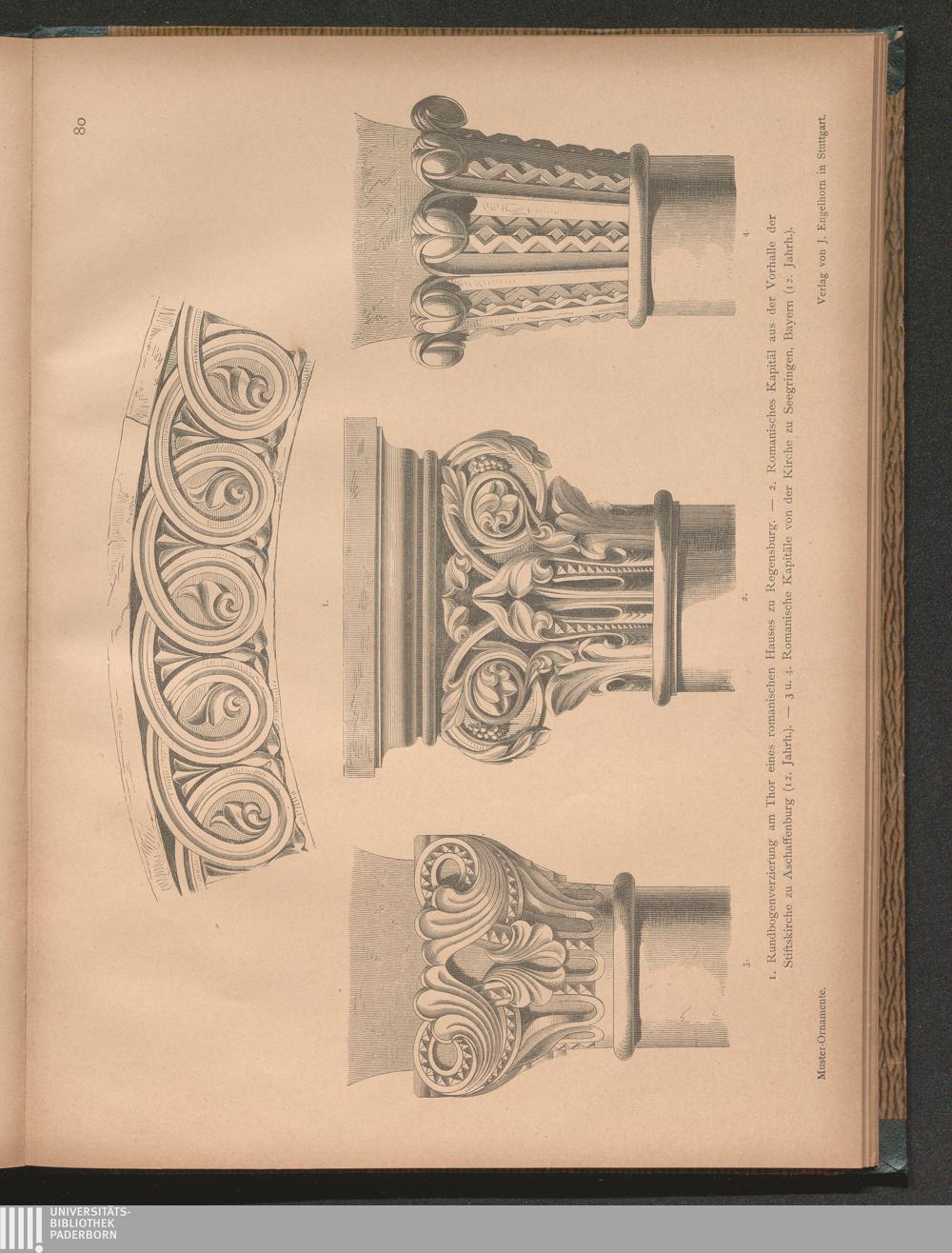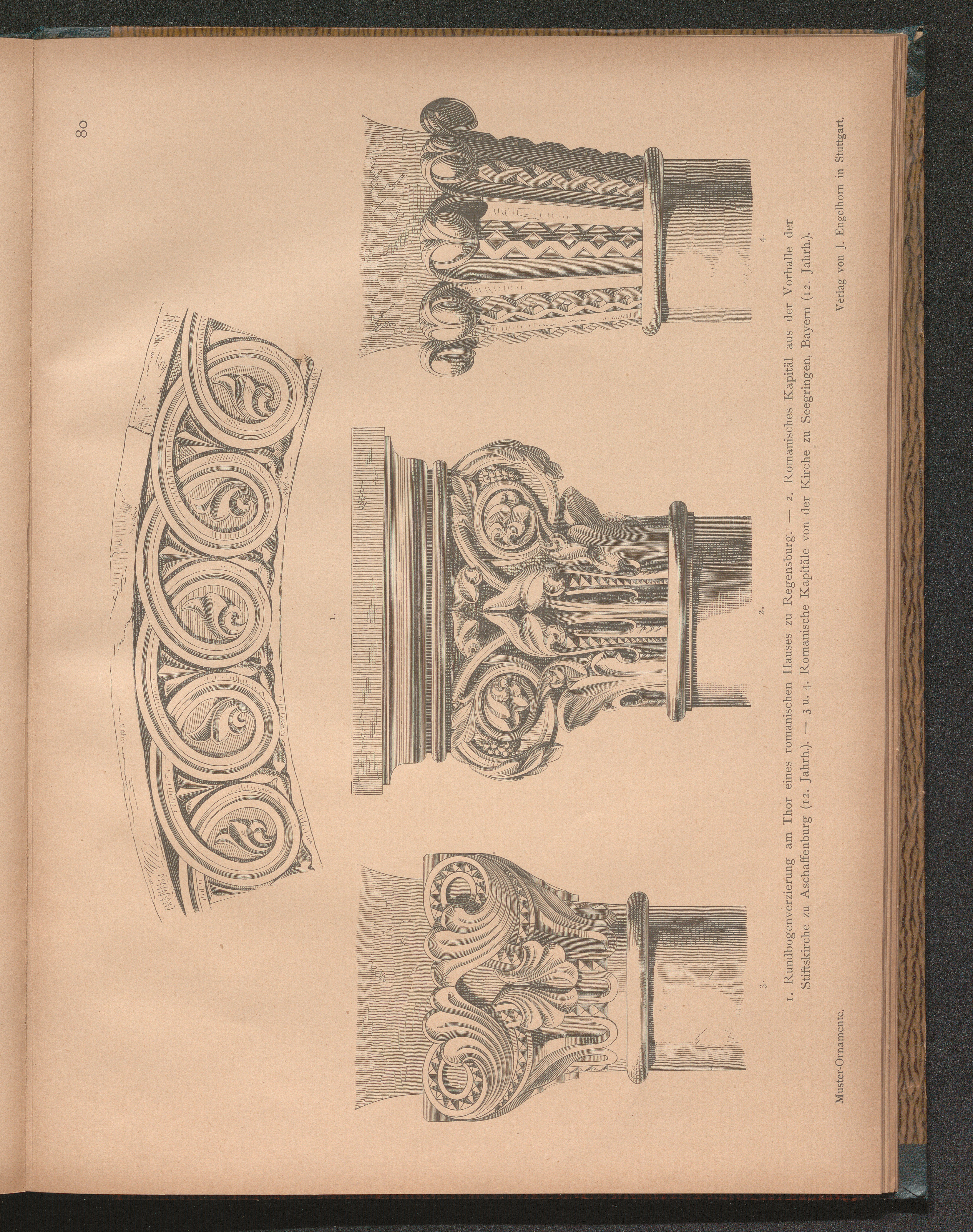 1. Rundbogenverzierung am Thor eines romanischen Hauses zu Regensburg. - 2. Romanisches[...]