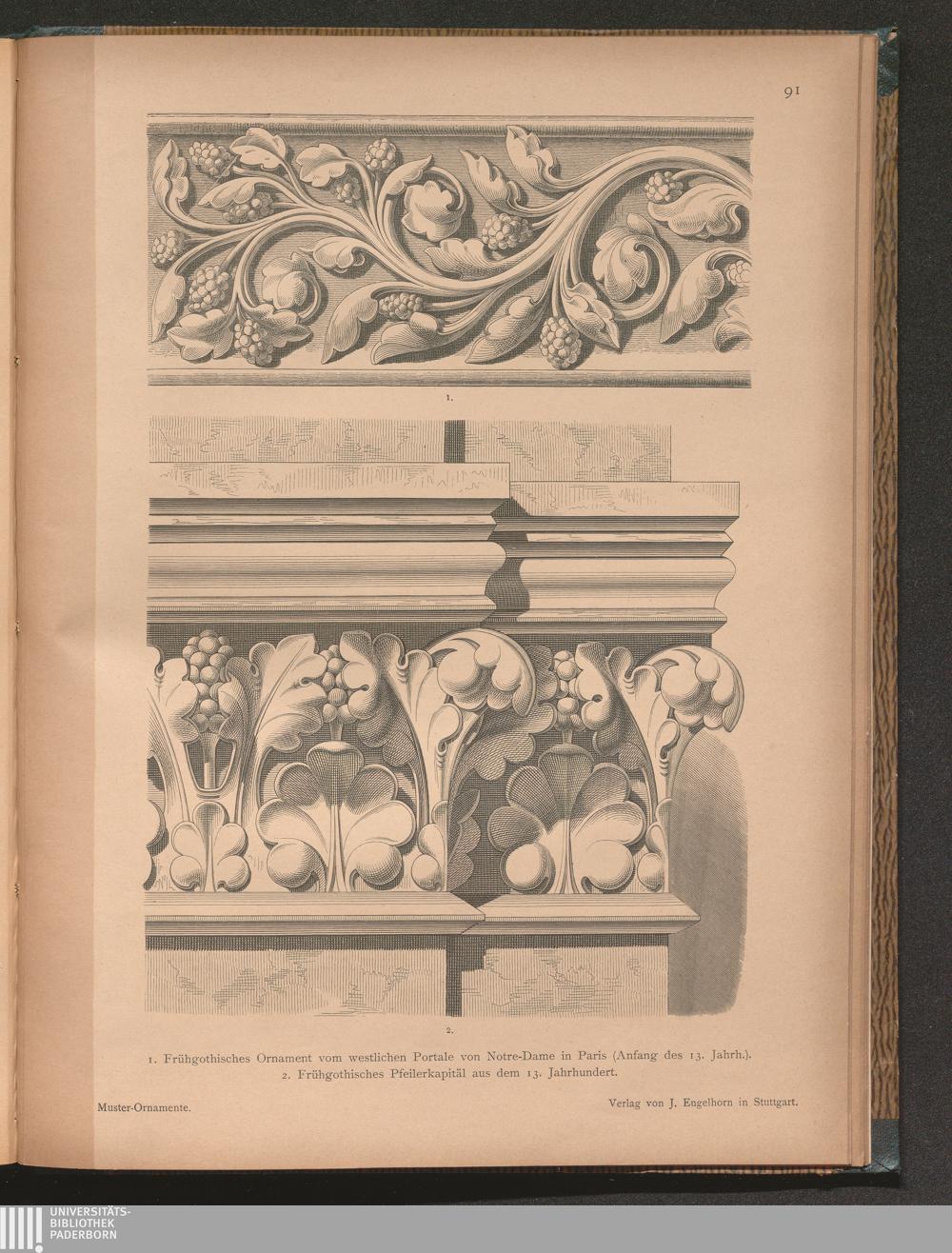 1. Frühgothisches Ornament vom westlichen Portale von Notre-Dame in Paris (Anfang[...]