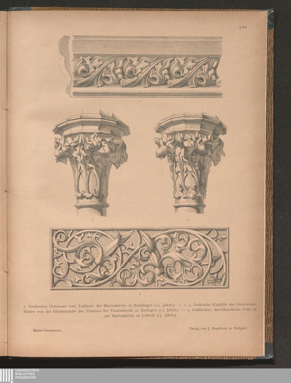 1. Gothisches Ornament vom Taufstein der Marienkirche in Reutlingen (15. Jahrh.).[...]