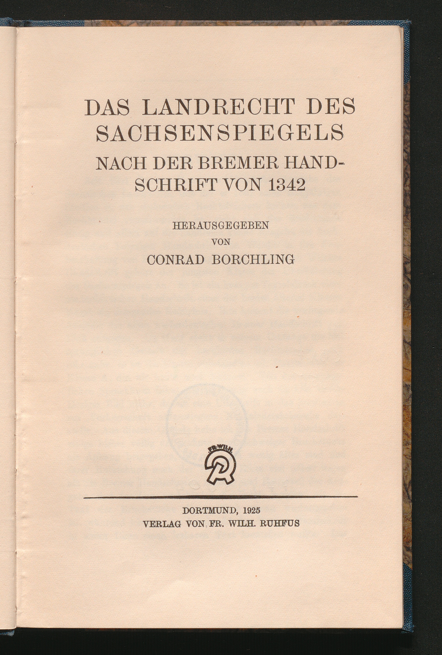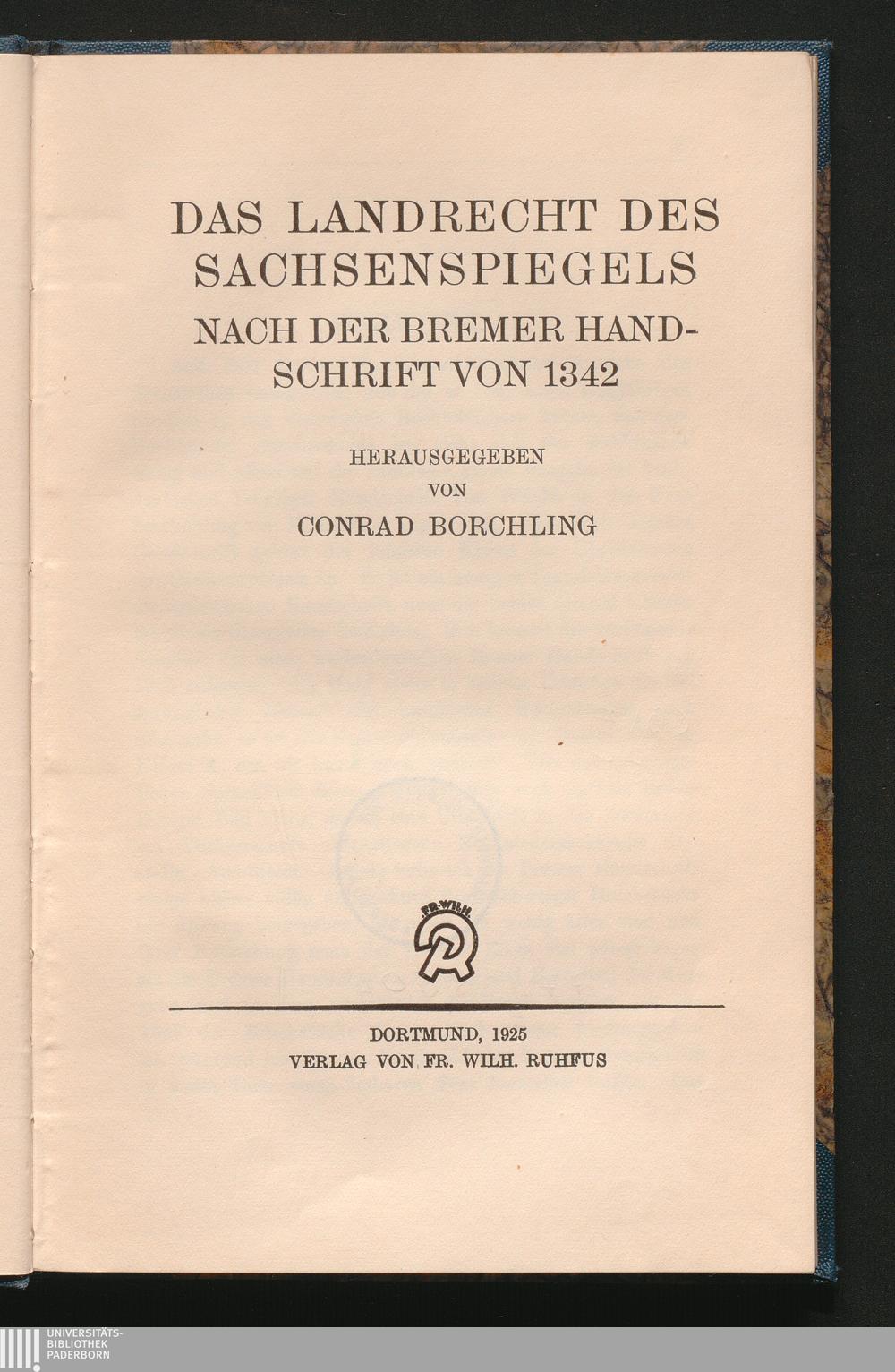 Das Landrecht des Sachsenspiegels : nach d. Bremer Hs. von 1342 / [Eike von Repgow]. Hrsg. von Conrad Borchling