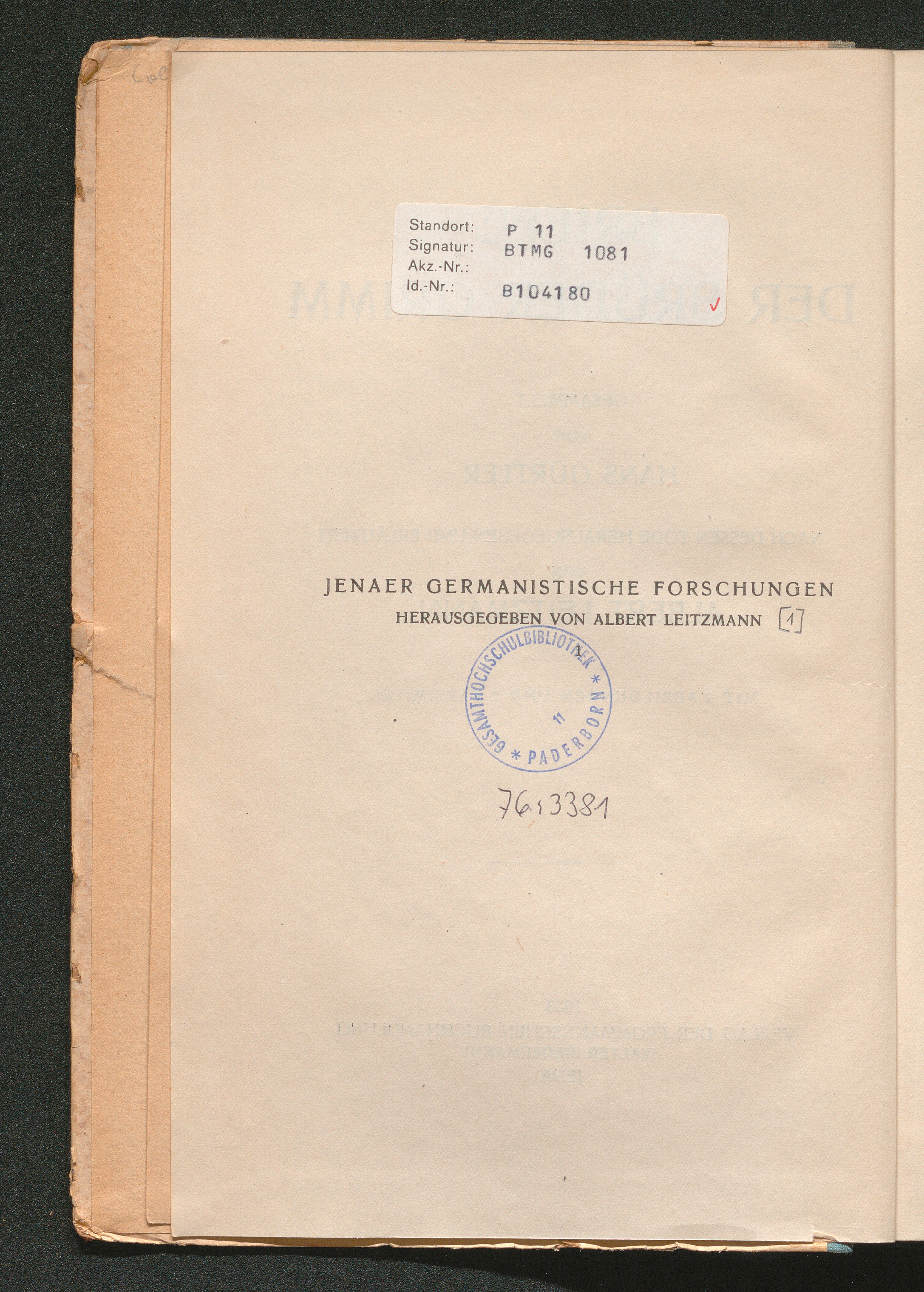 Briefe der Brüder Grimm / gesammelt von Hans Gürtler. Nach dessen Tode hrsg. und erl. von Albert Leitzmann