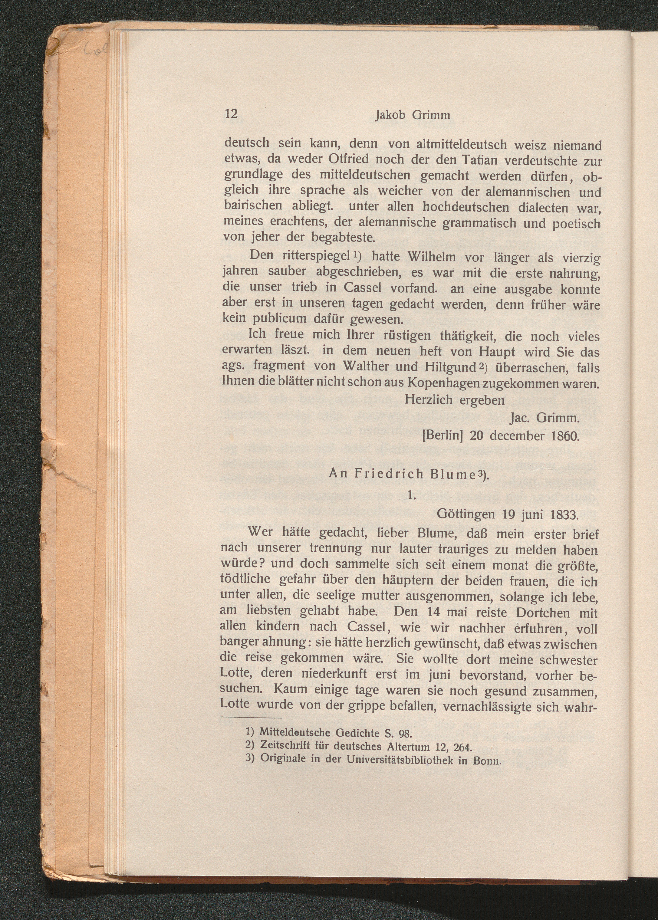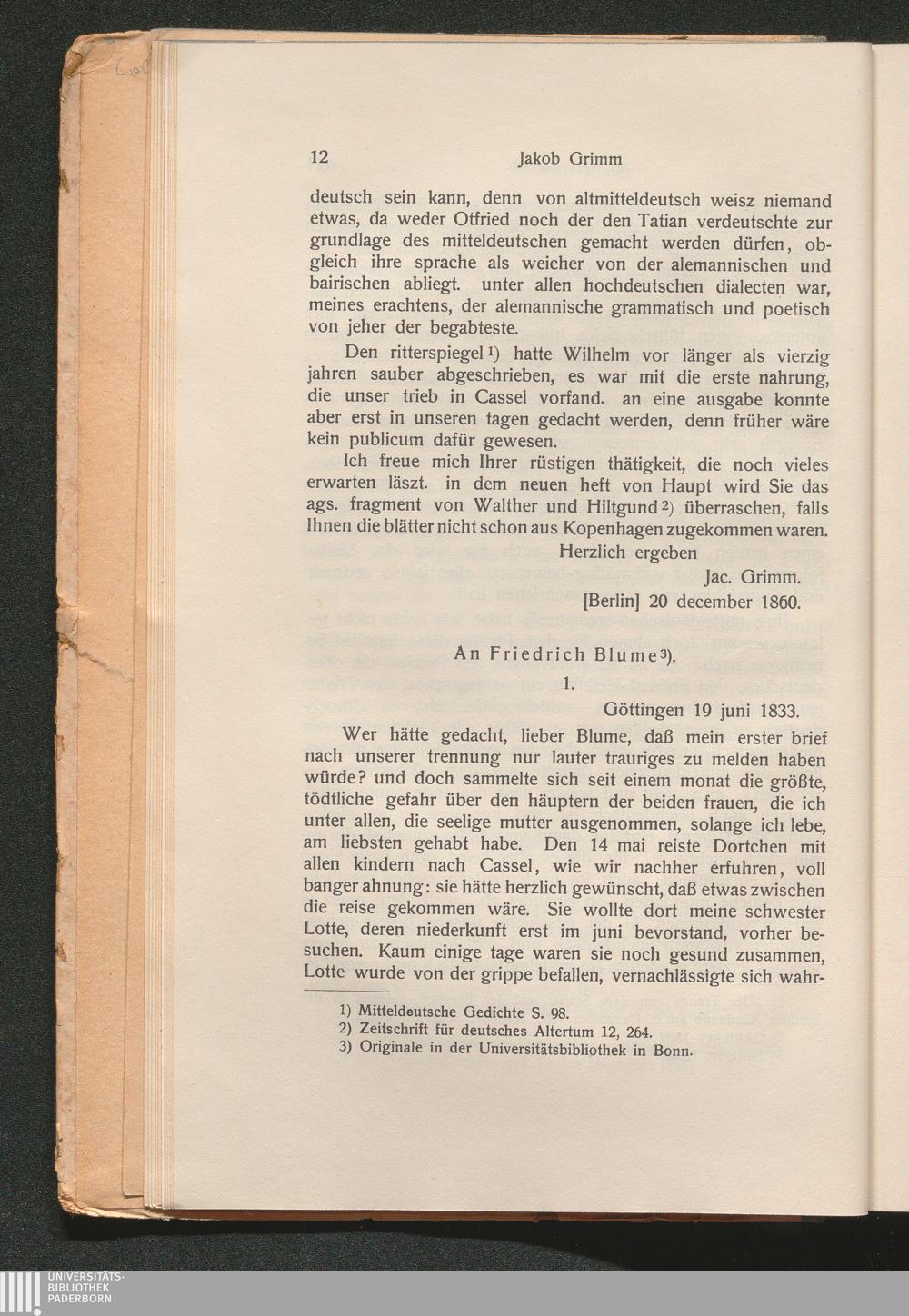 An Friedrich Blume (1833 - 47)