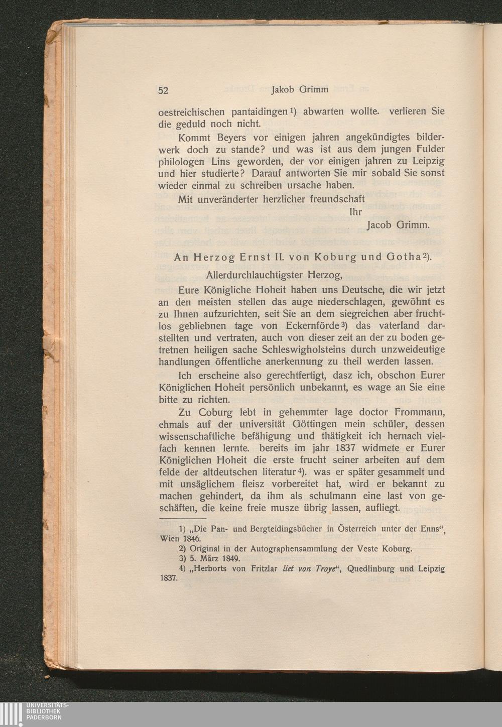 I. Briefe von Jakob Grimm