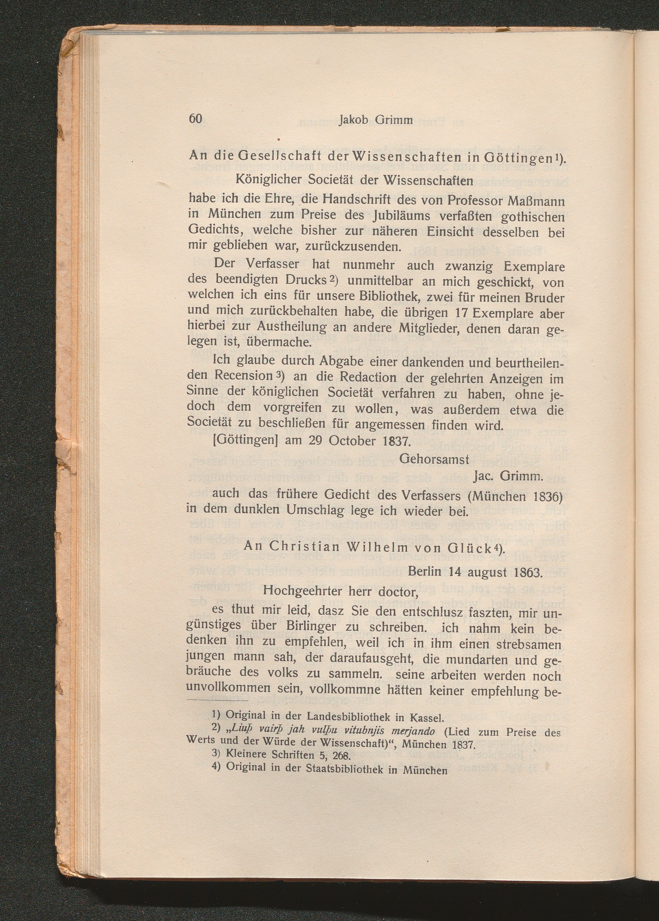 An Christian Wilhelm von Glück (1863)
