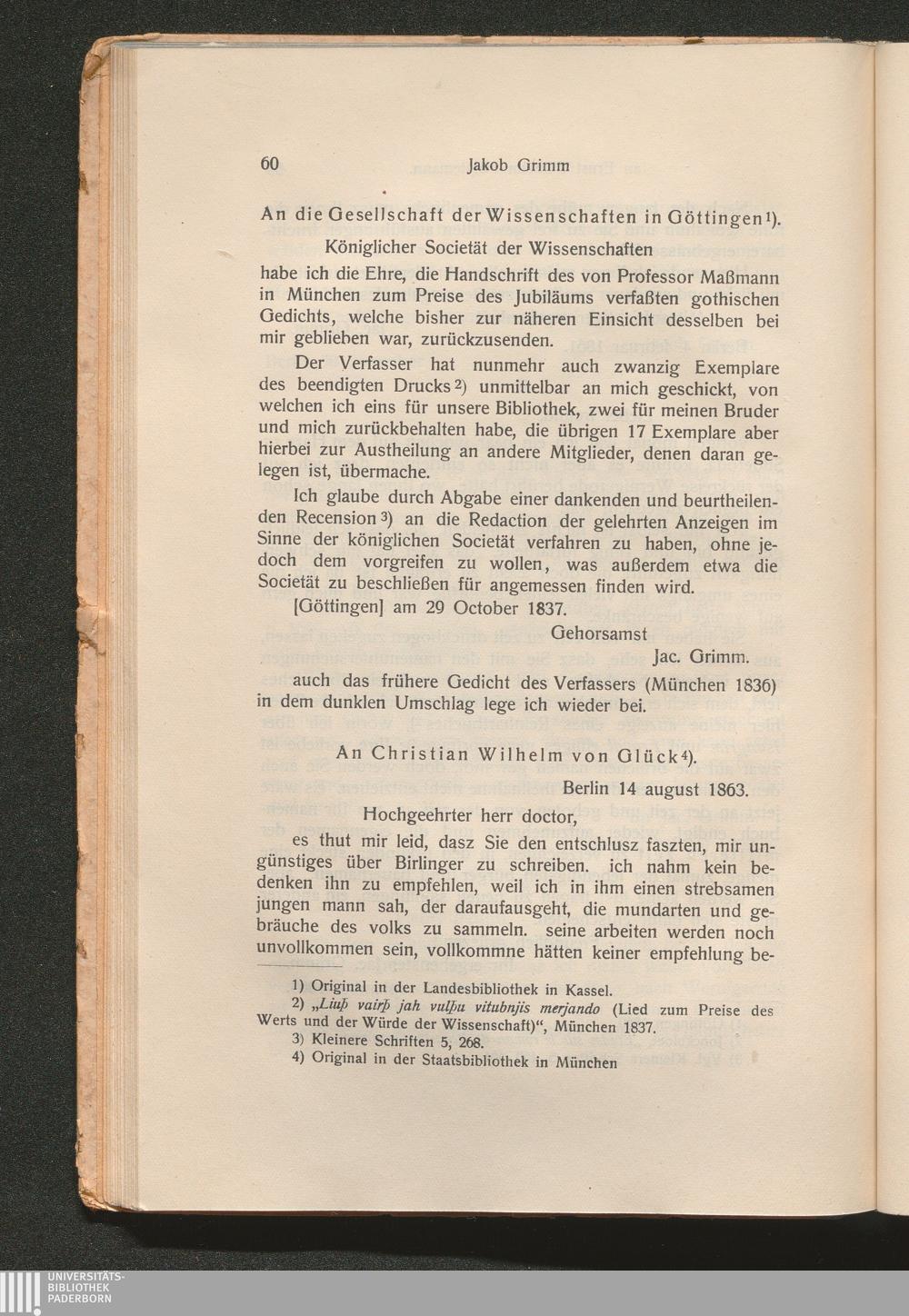 I. Briefe von Jakob Grimm