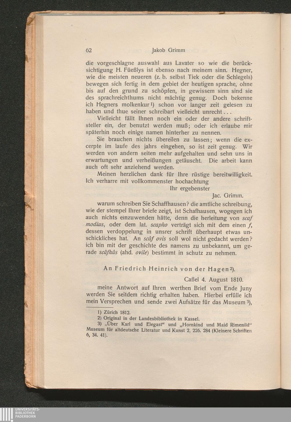 An Friedrich Heinrich von der Hagen (1810)