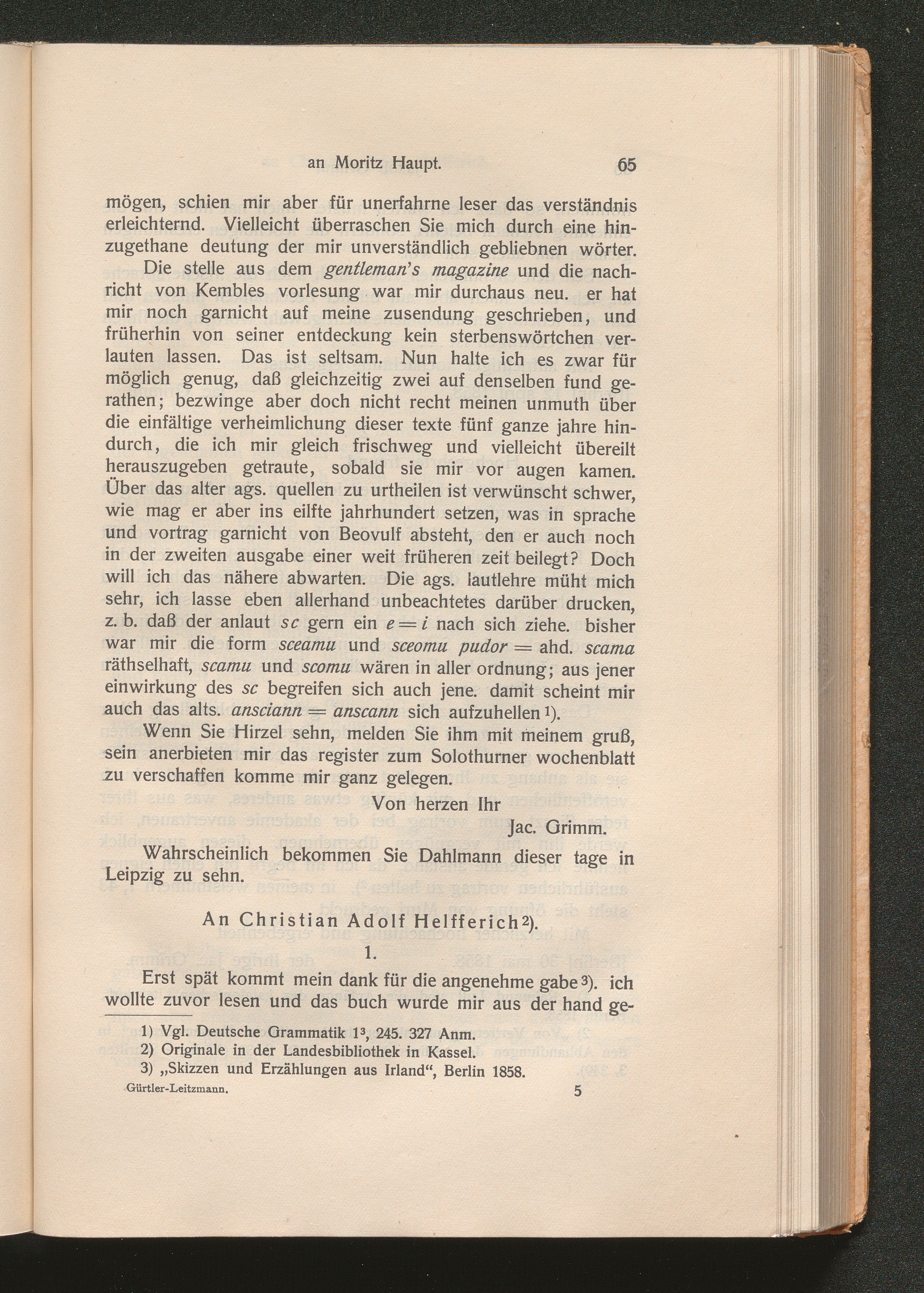 Briefe der Brüder Grimm / gesammelt von Hans Gürtler. Nach dessen Tode hrsg. und erl. von Albert Leitzmann