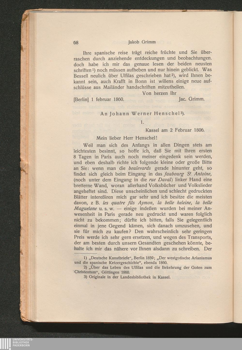 Briefe der Brüder Grimm / gesammelt von Hans Gürtler. Nach dessen Tode hrsg. und erl. von Albert Leitzmann