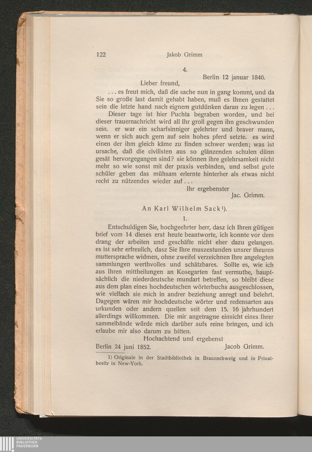 I. Briefe von Jakob Grimm
