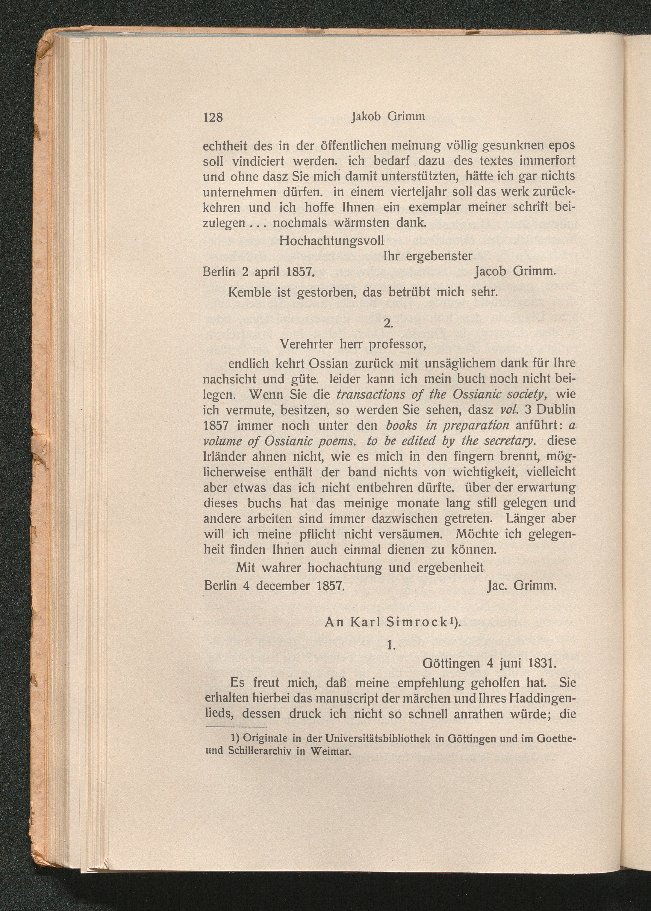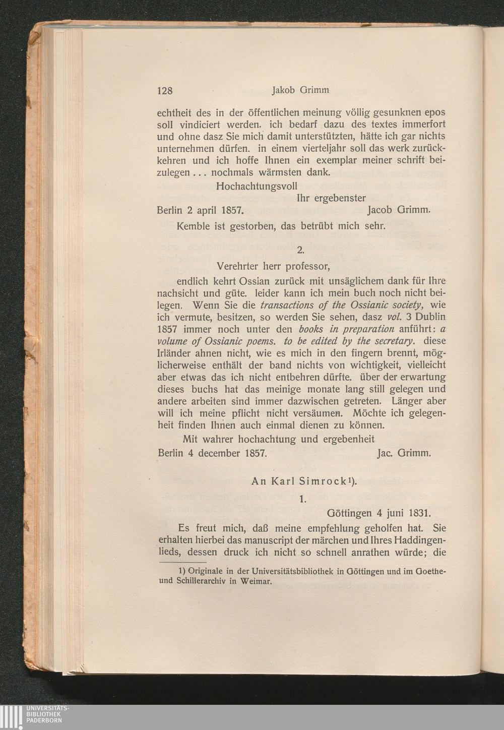 I. Briefe von Jakob Grimm