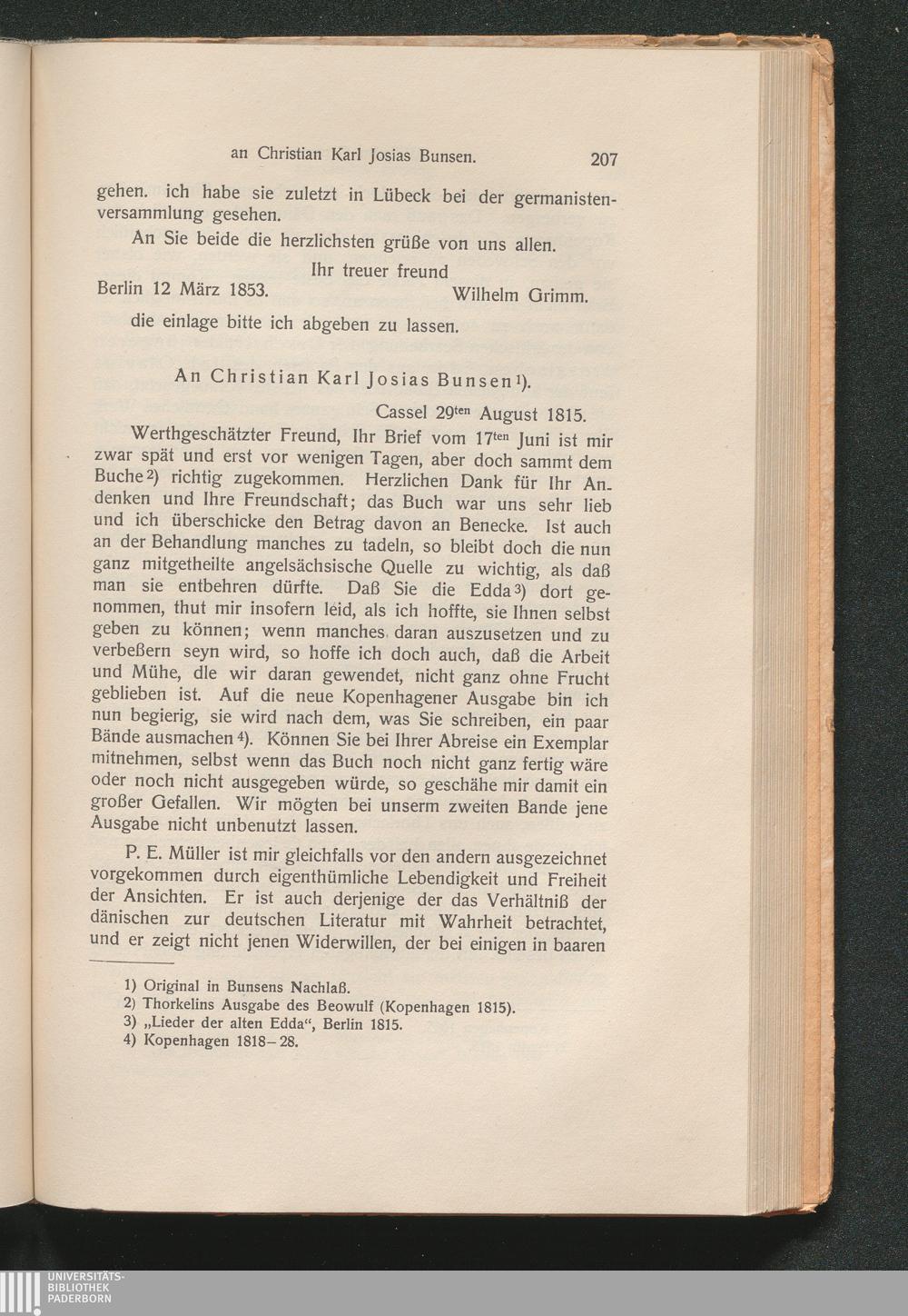 An Christian Karl Josias Bunsen (1815)