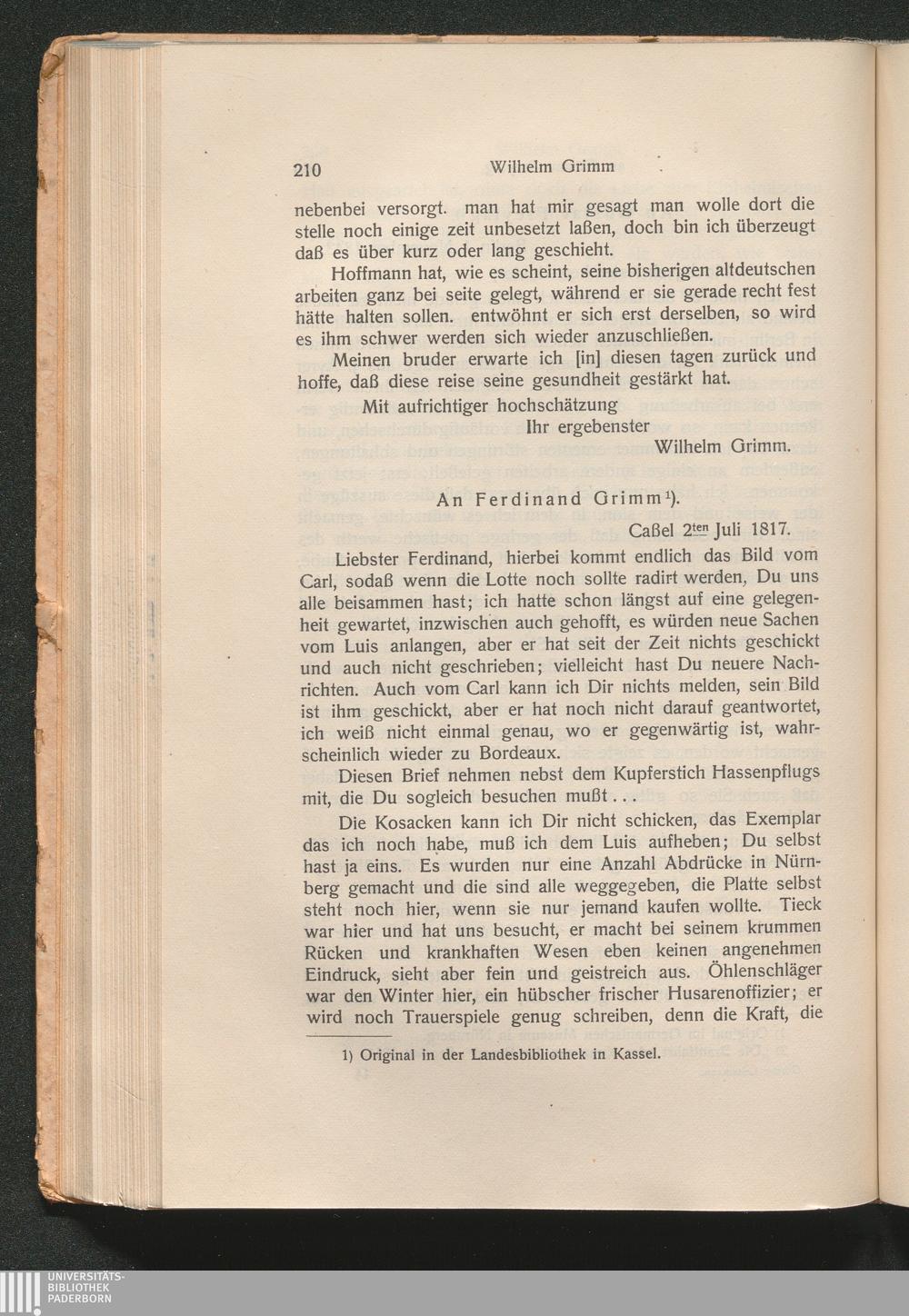 II. Briefe von Wilhelm Grimm