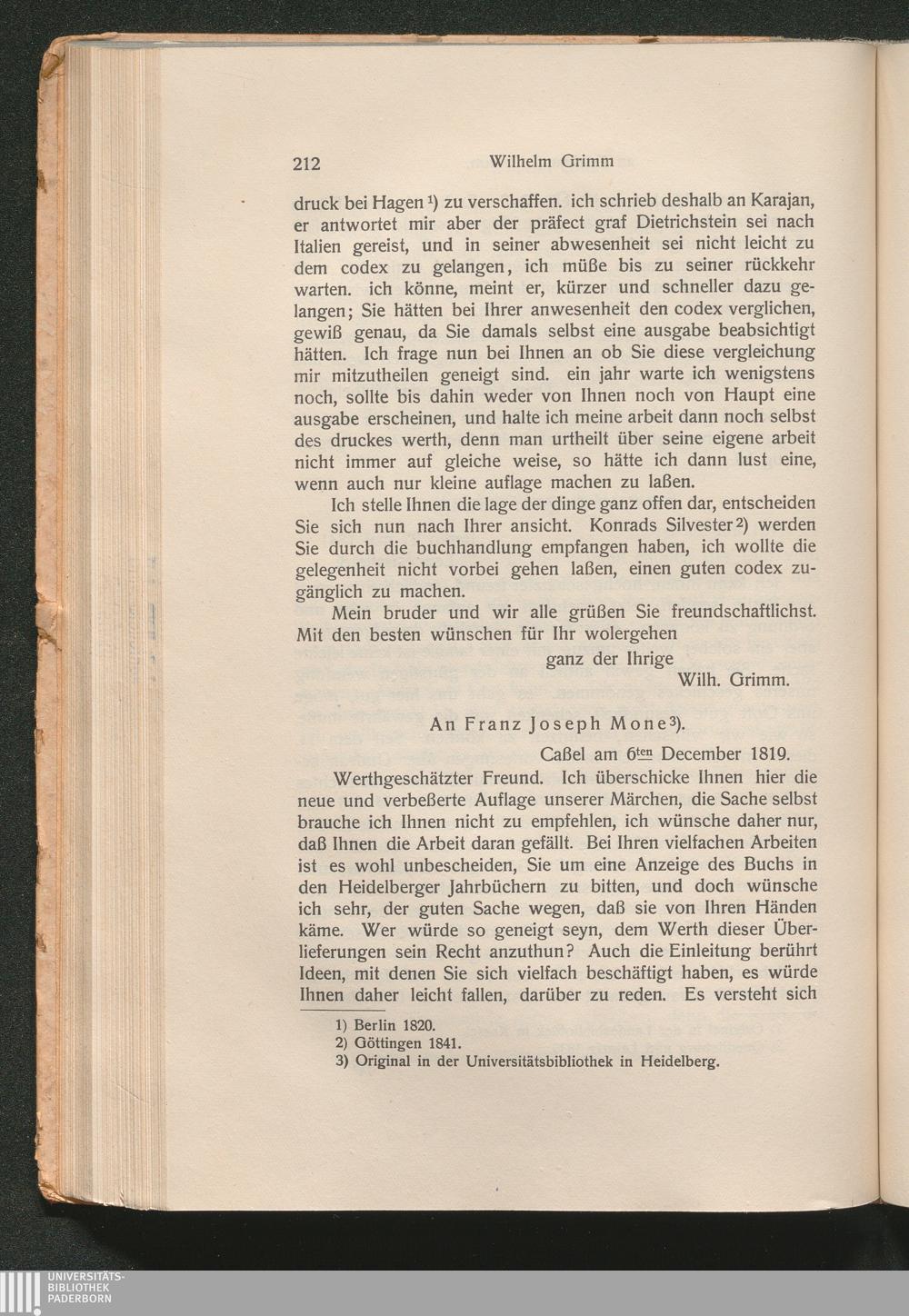 II. Briefe von Wilhelm Grimm