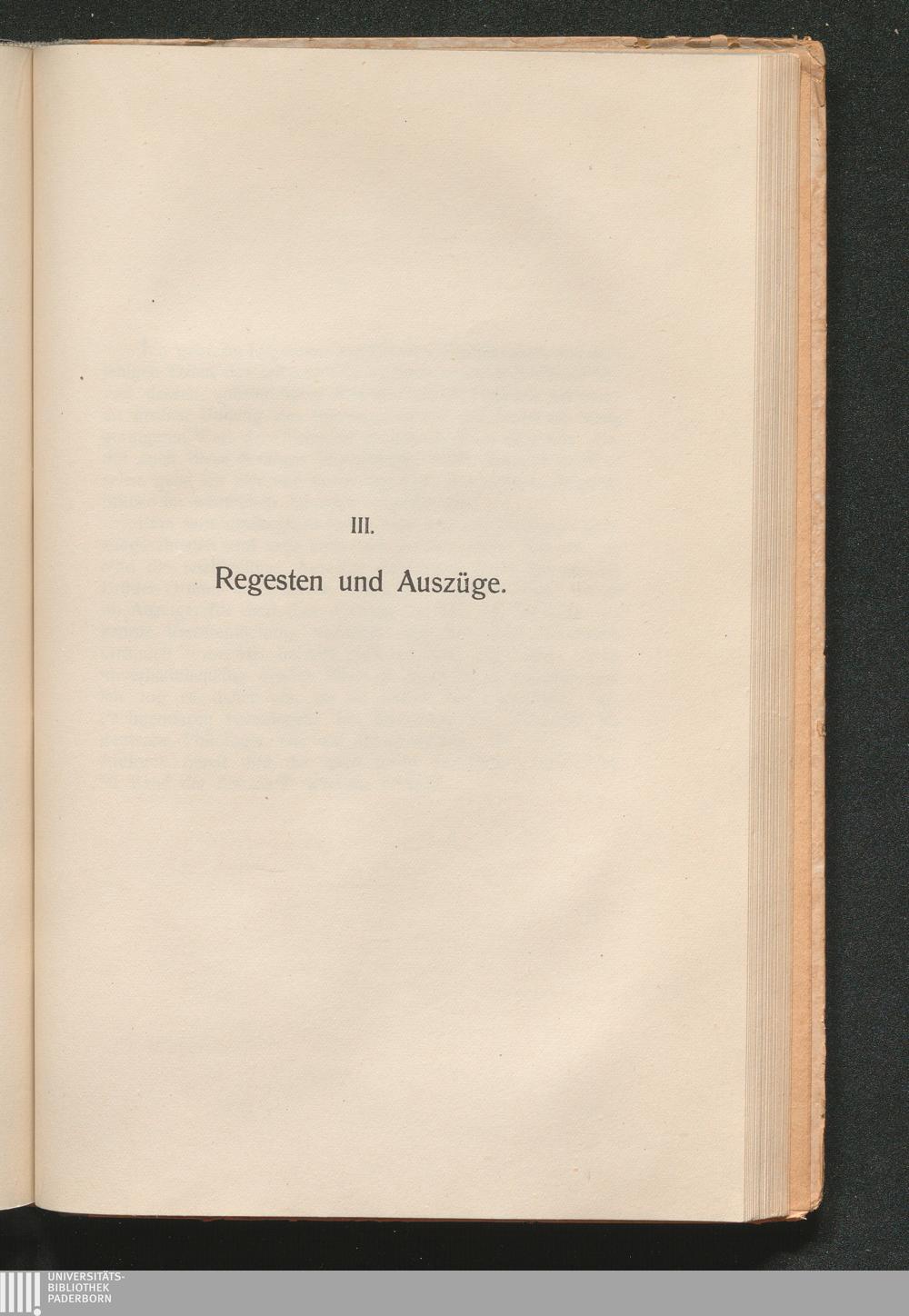 III. Regesten und Auszüge