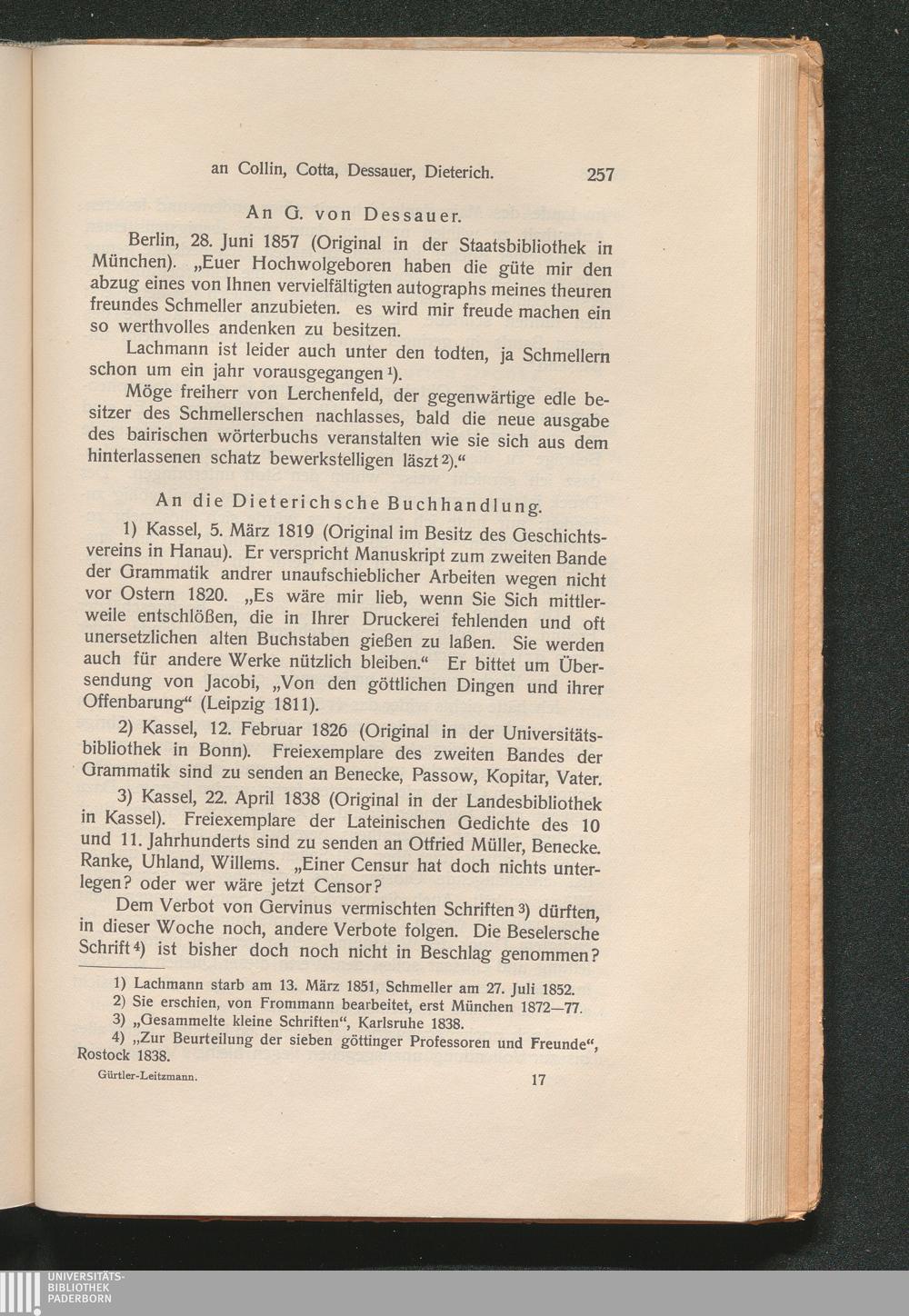 I. Briefe von Jakob Grimm
