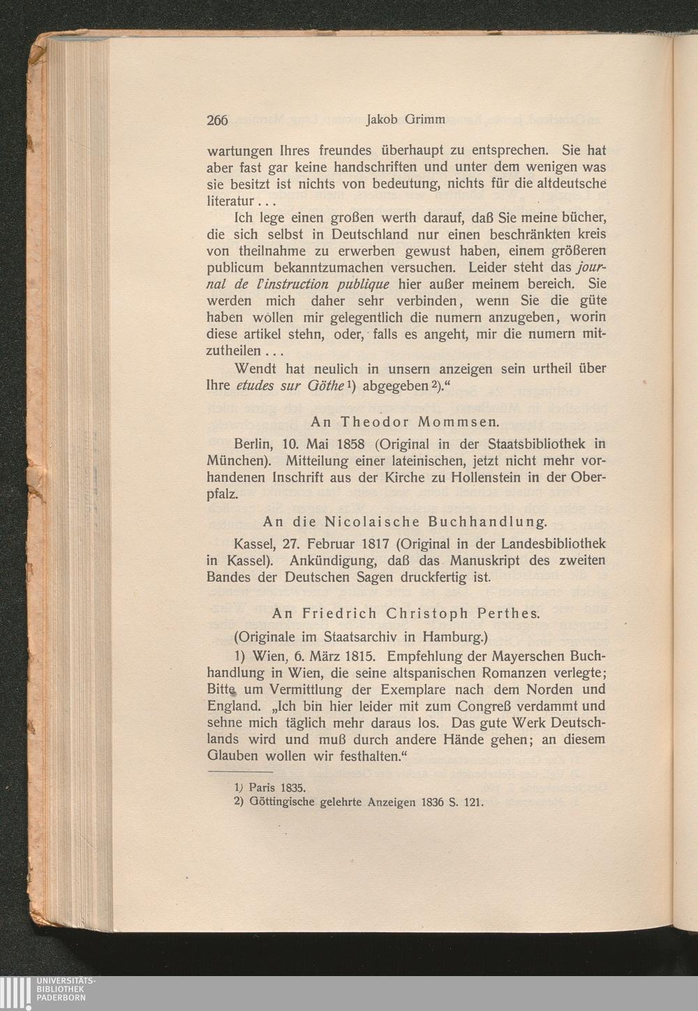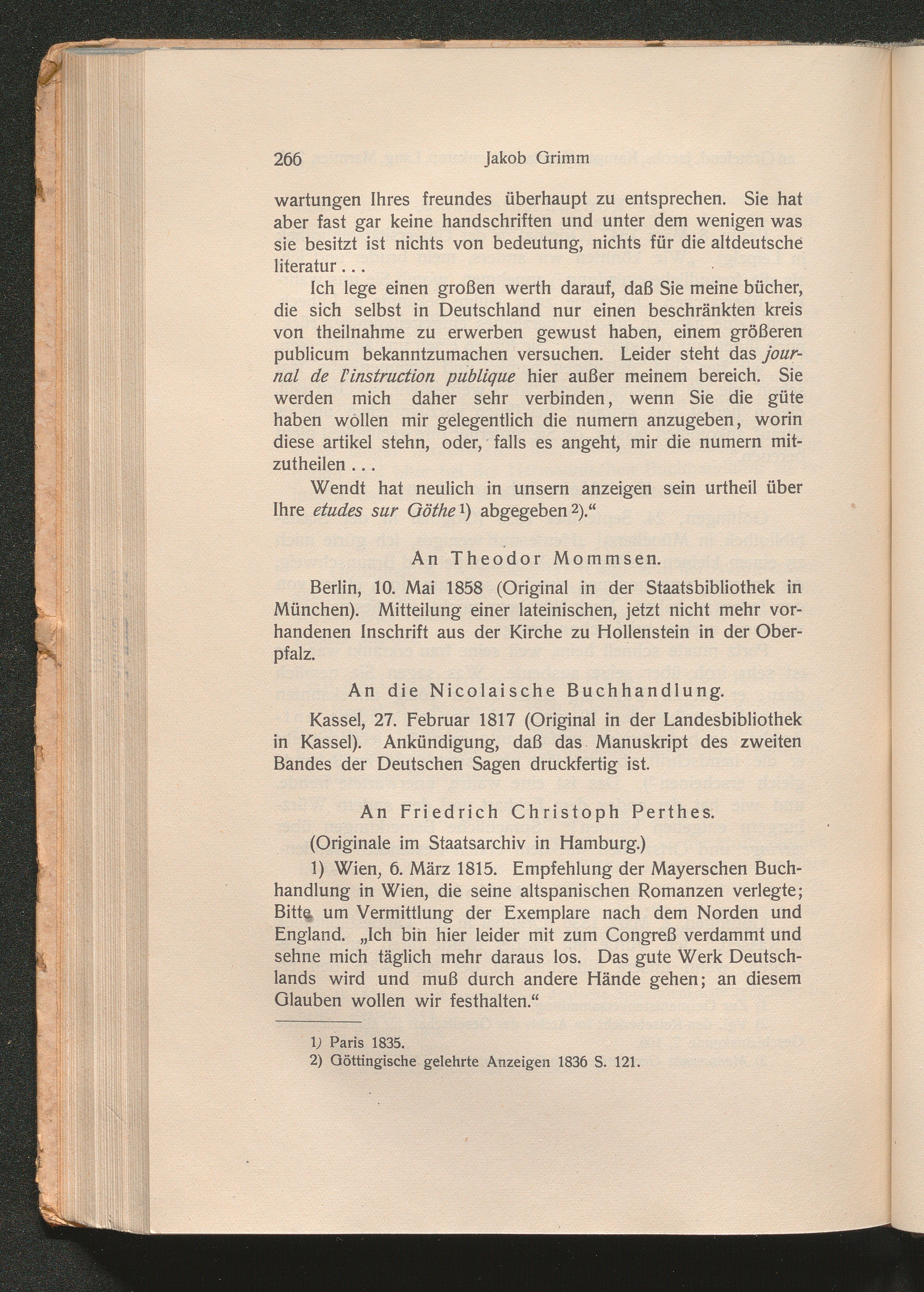 An Friedrich Christoph Perthes (1815 - 39)