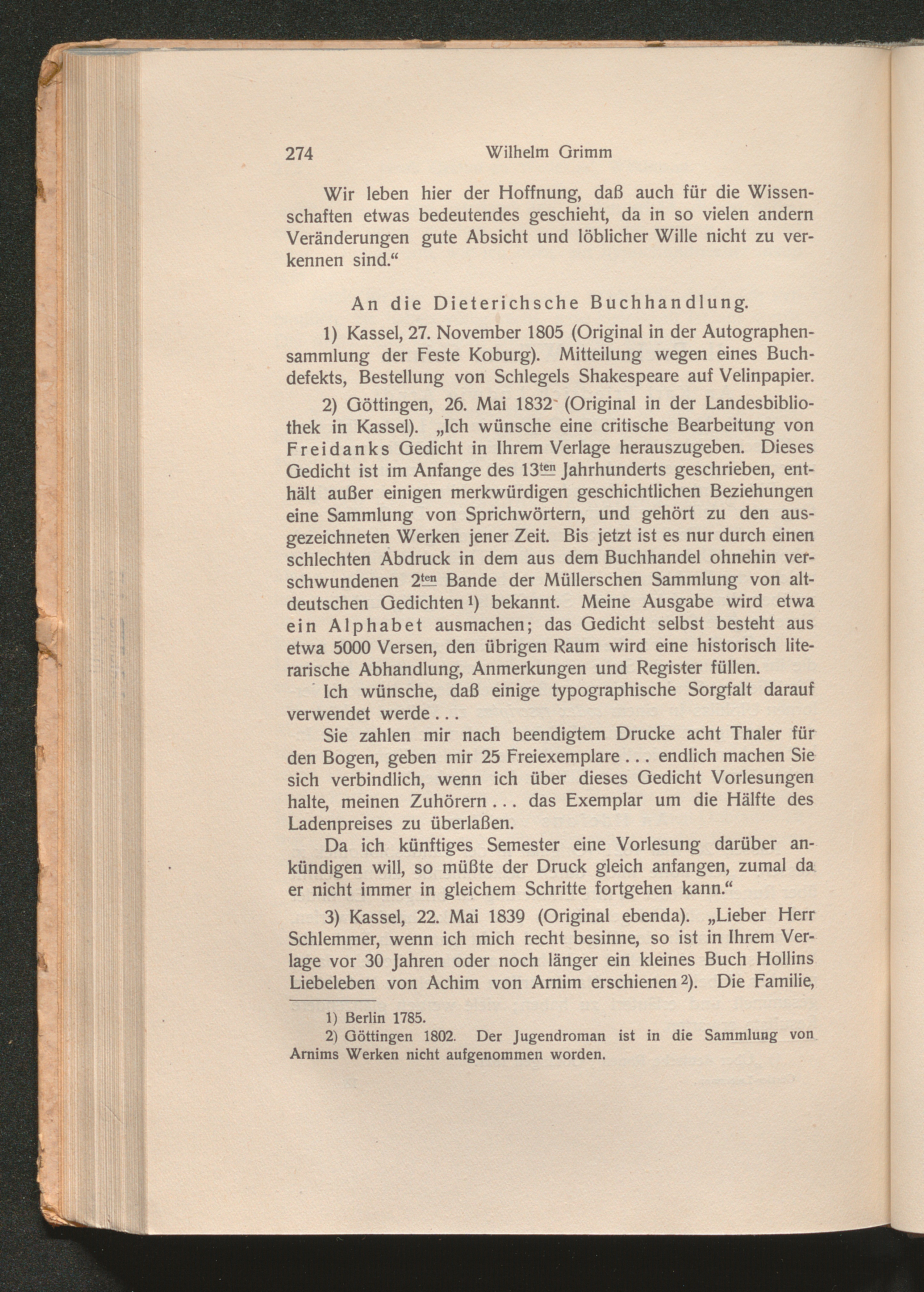 Briefe der Brüder Grimm / gesammelt von Hans Gürtler. Nach dessen Tode hrsg. und erl. von Albert Leitzmann