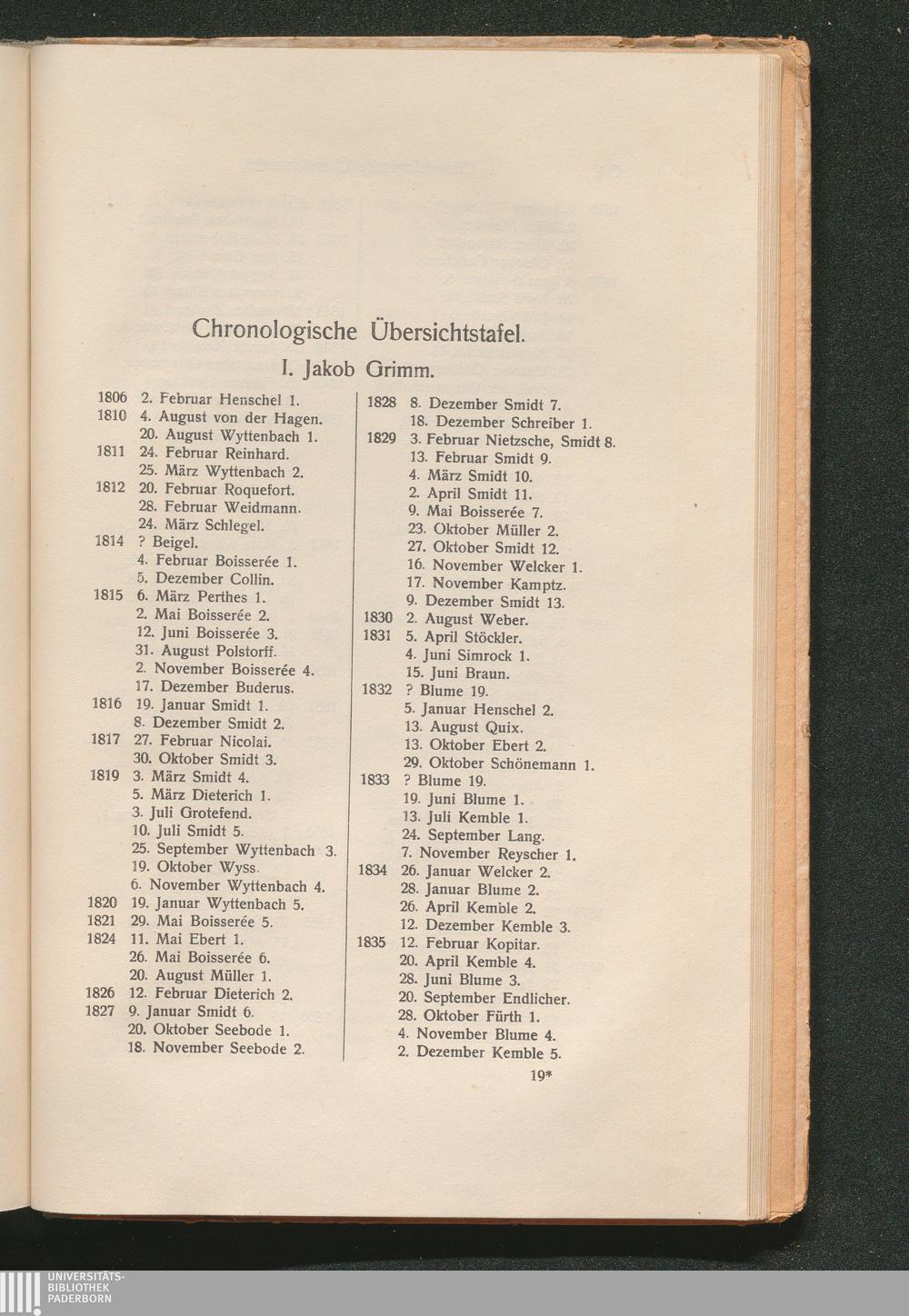 Chronologische Übersichtstafel und Register