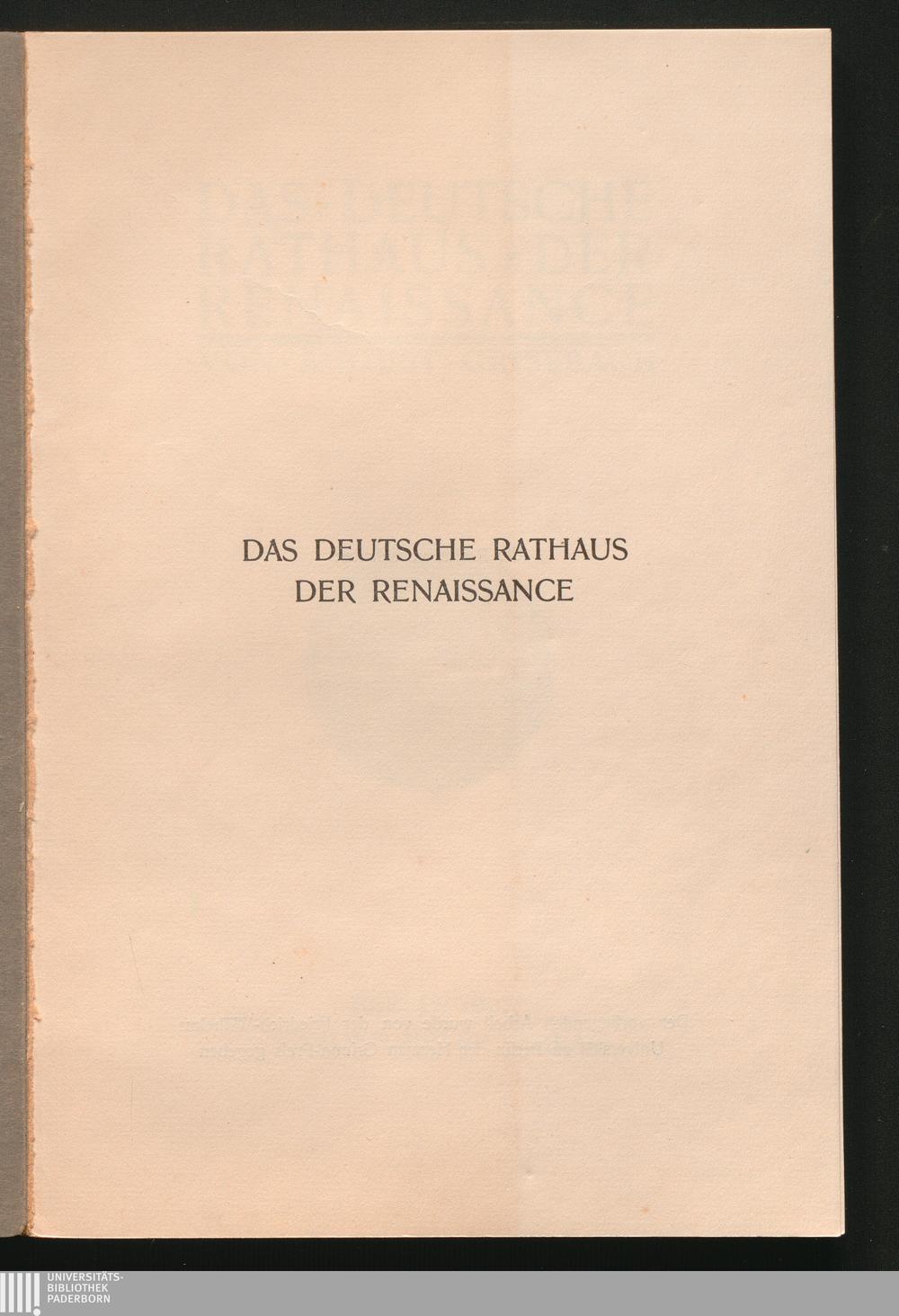 Das deutsche Rathaus der Renaissance / August Grisebach