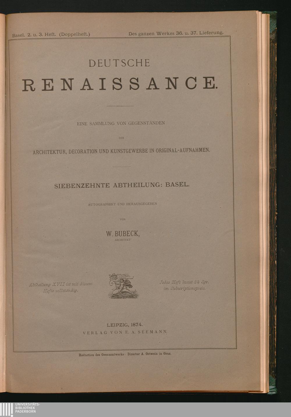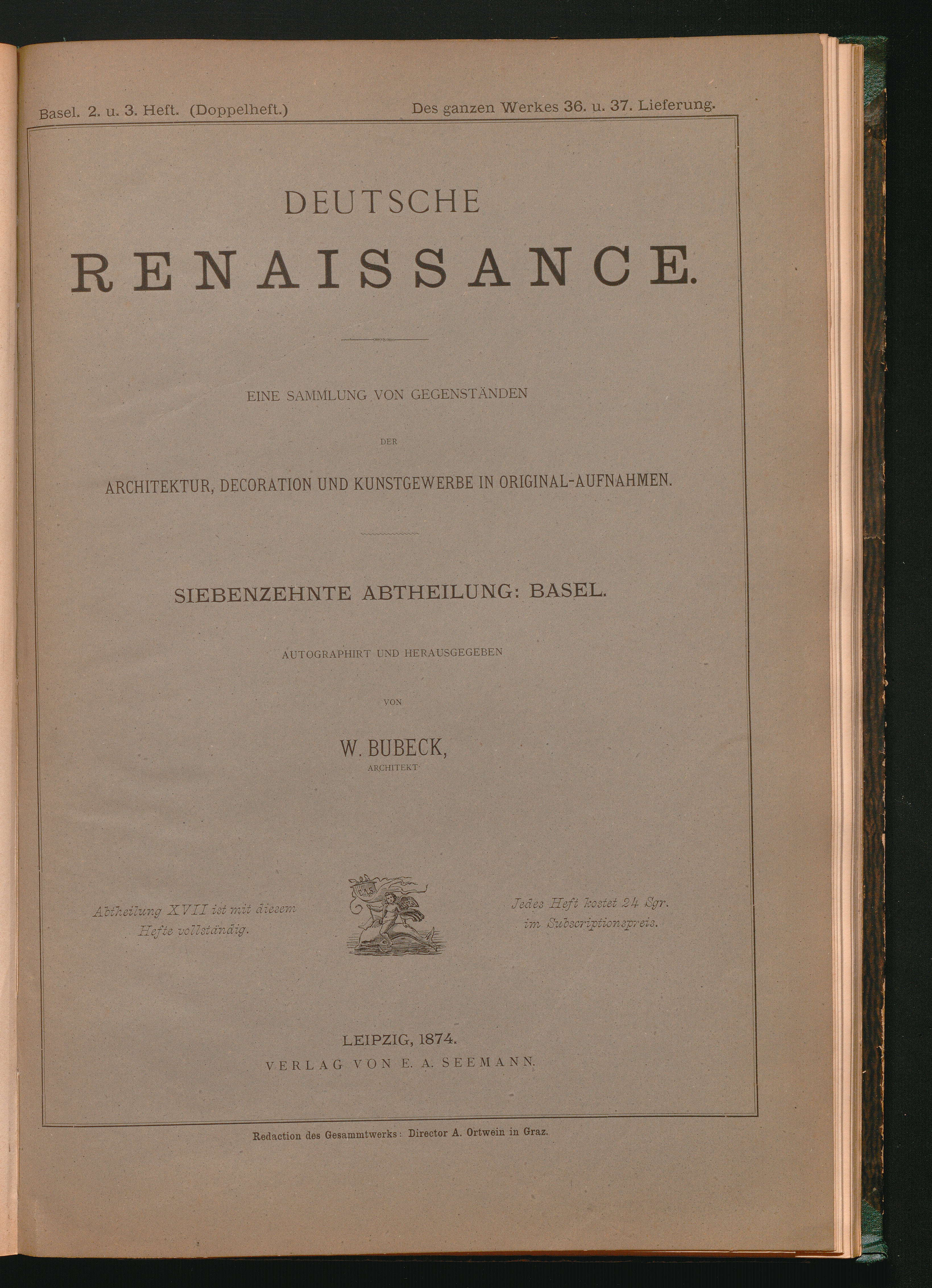 Siebzehnte Abtheilung: Basel. Zweite Und Dritte Leiferung. (Schluss.)