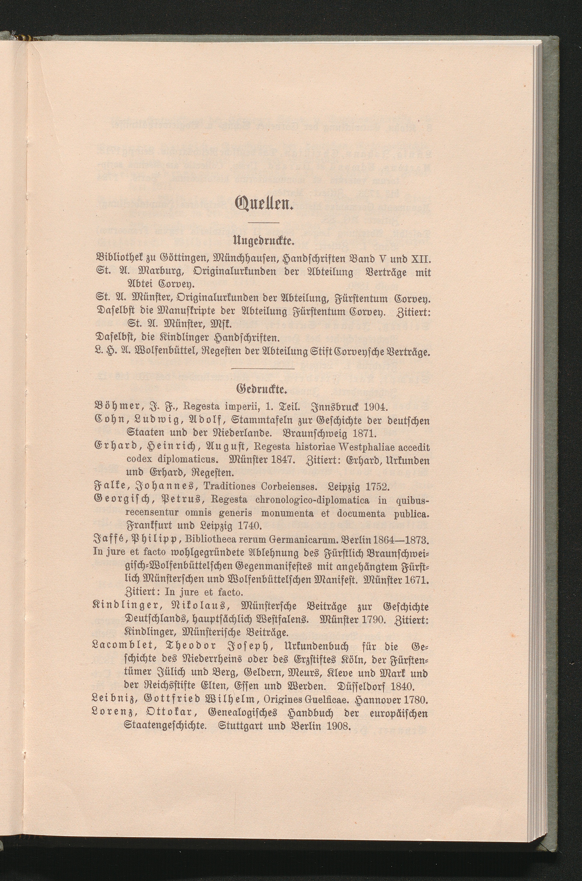 Fünftes Kapitel: Der wechselnde Anschluß der Abtei Corveys an Köln, Paderborn, Braunschweig und Hessen seit dem Jahre 1180 bis zum Ende des 14. Jahrhunderts.
