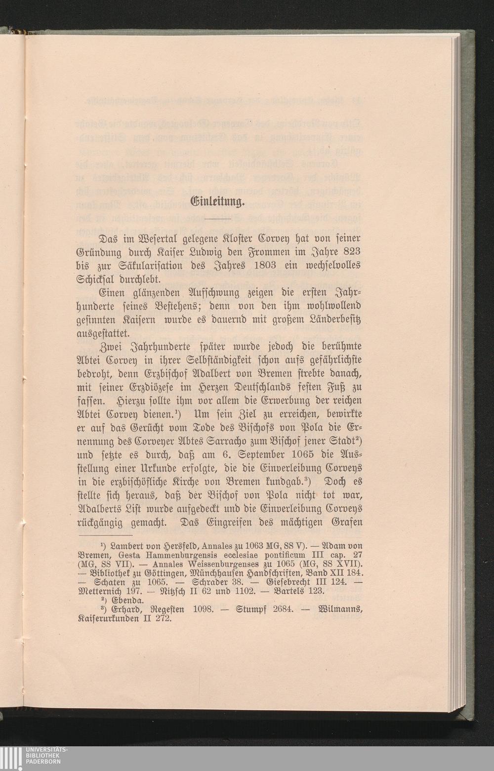Einleitung: Überblick über die Geschichte der Abtei Corvey.