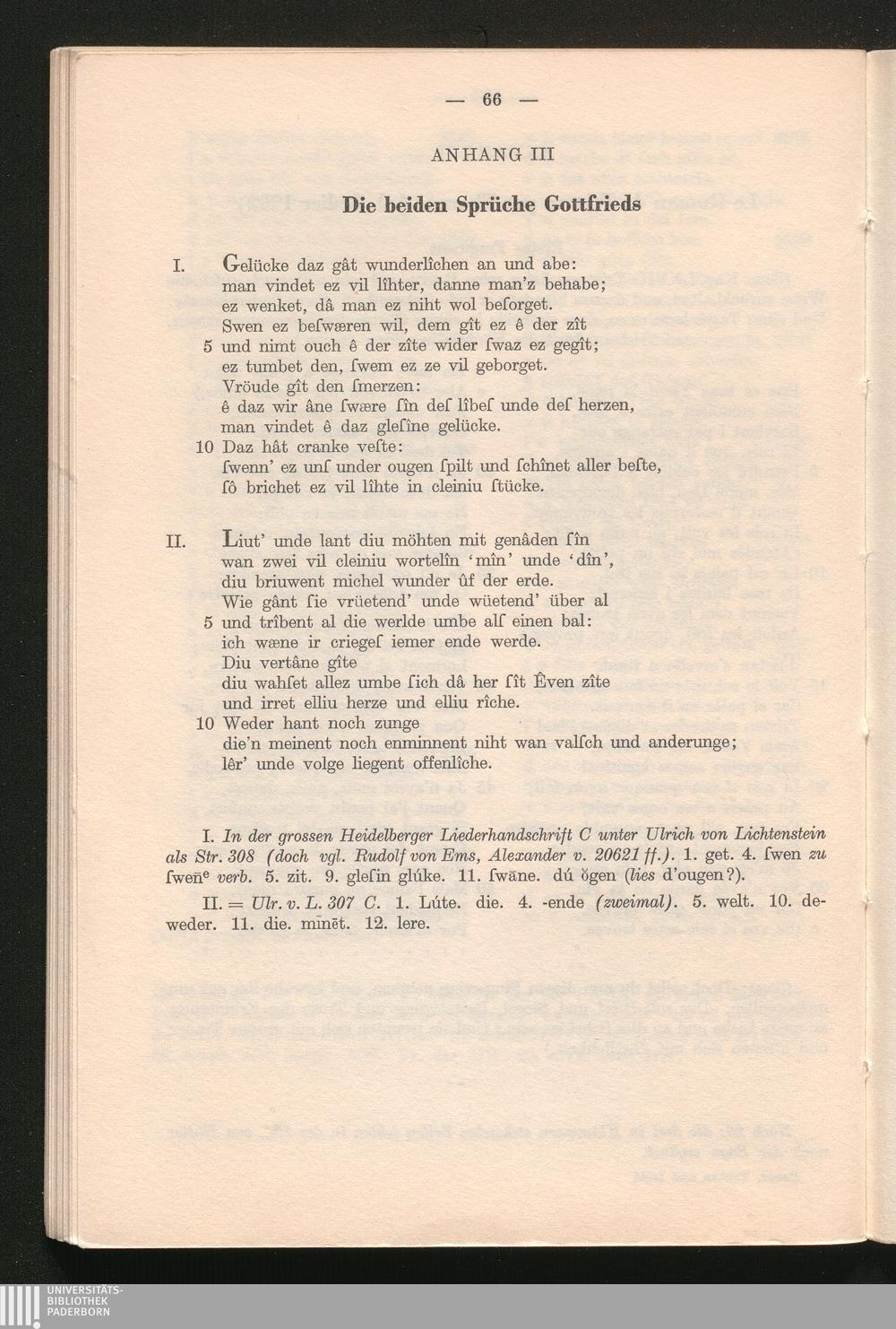 Anhang III Die beiden Sprüche Gottfrieds