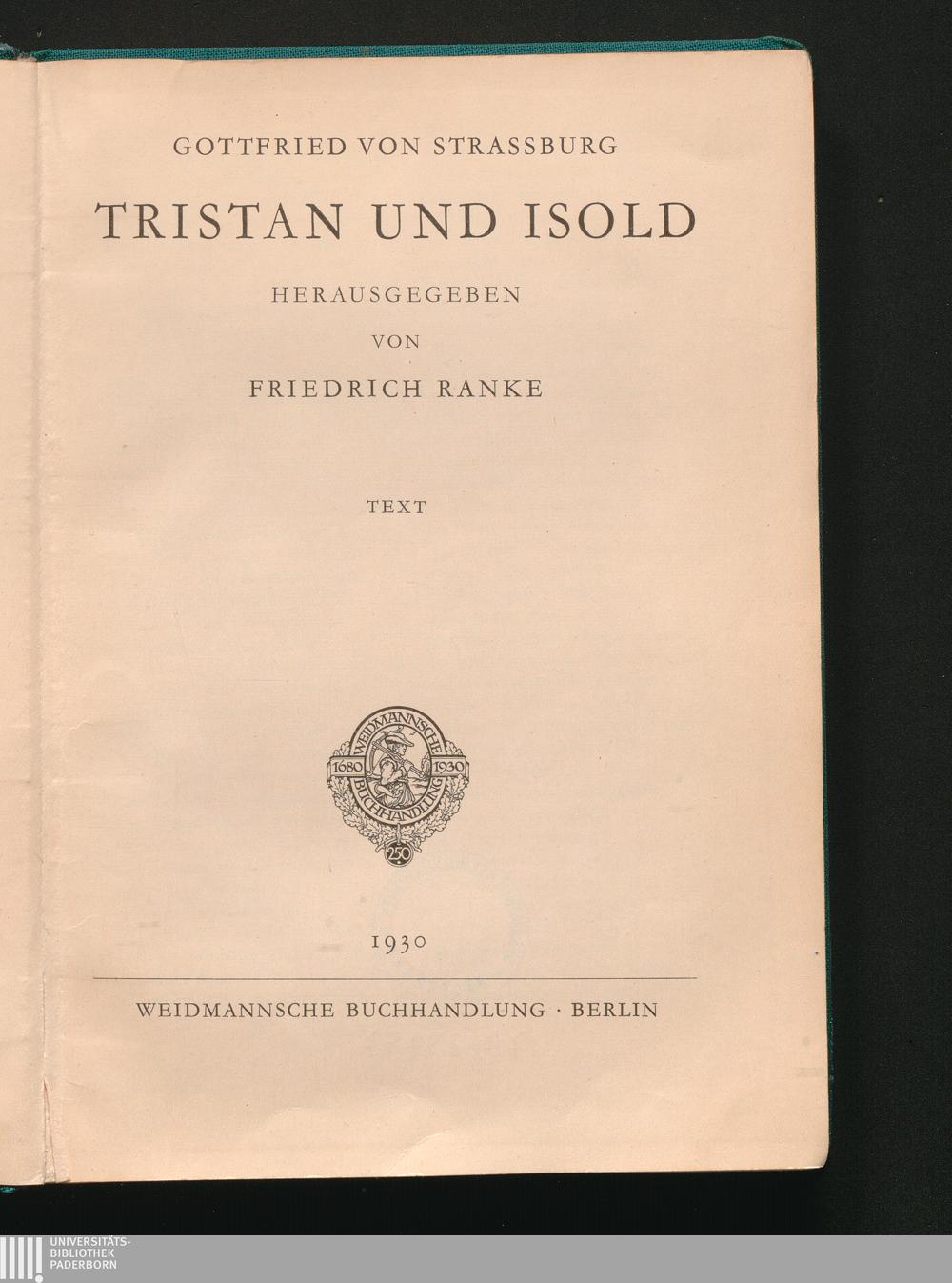 Tristan und Isold : Text / Gottfried von Strassburg. Hrsg. v. Friedrich Ranke