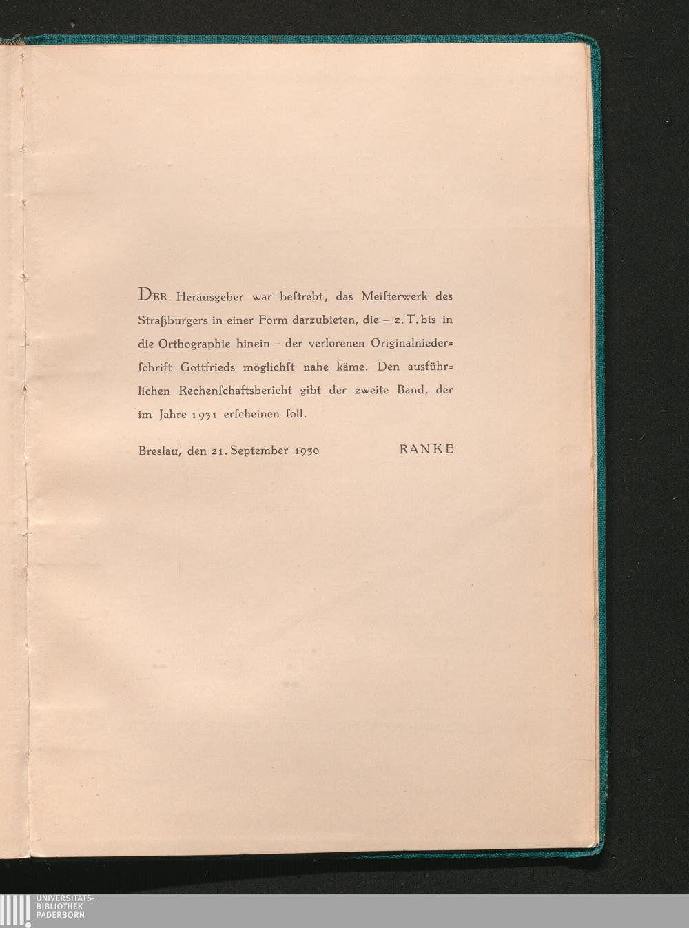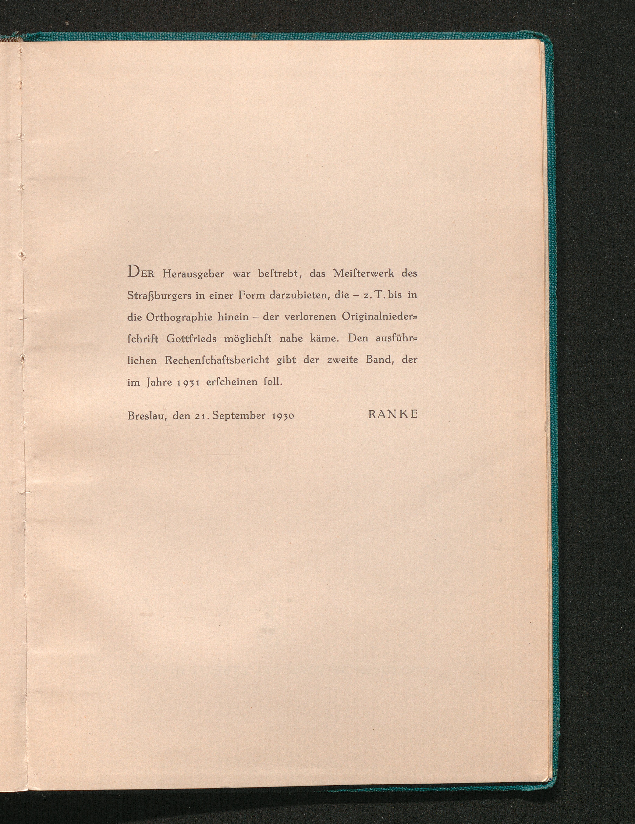 Tristan und Isold : Text / Gottfried von Strassburg. Hrsg. v. Friedrich Ranke