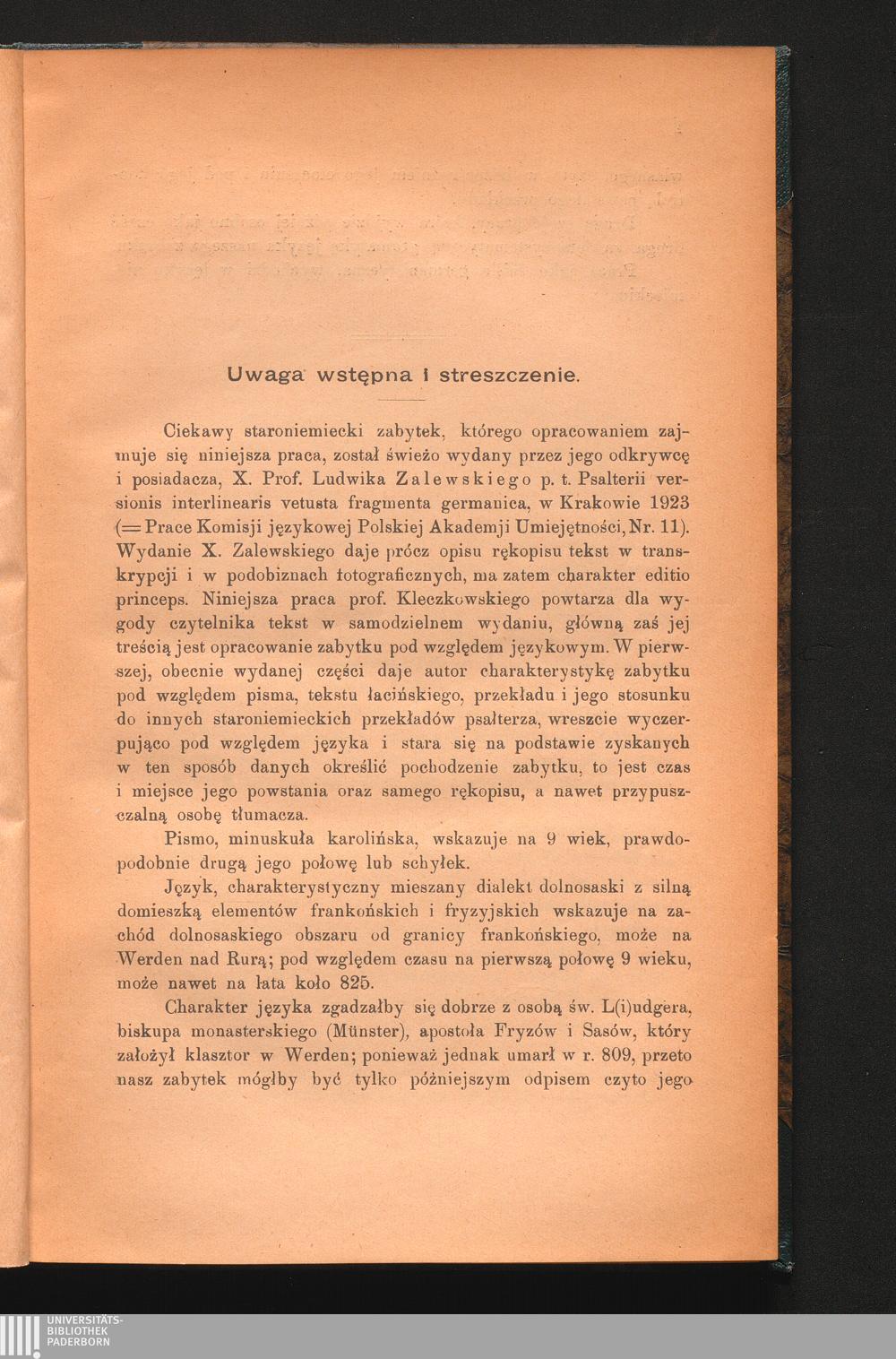 Neuentdeckte altsaechsische Psalmenfragmente aus der Karolingerzeit / Adam Kleczkowski