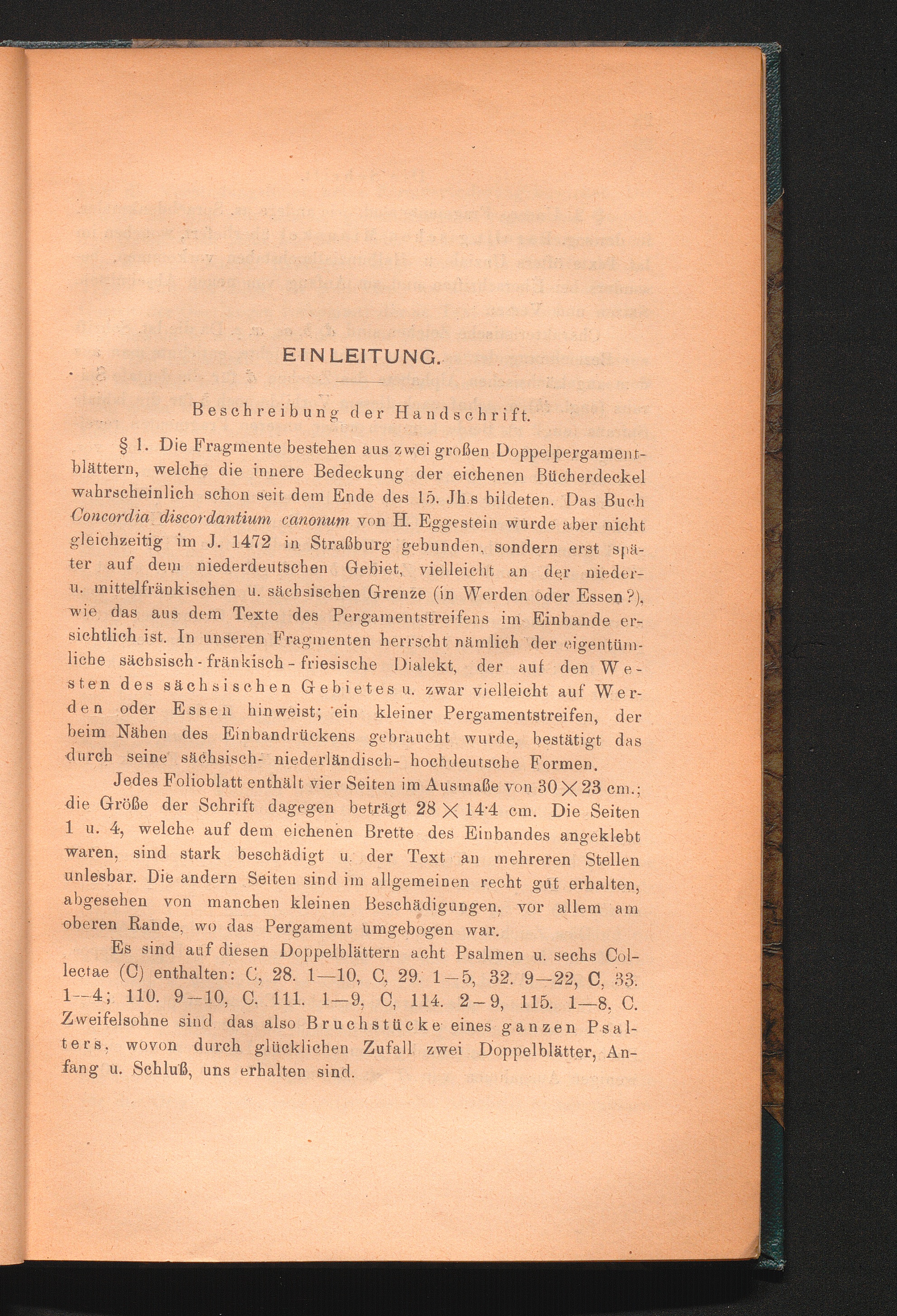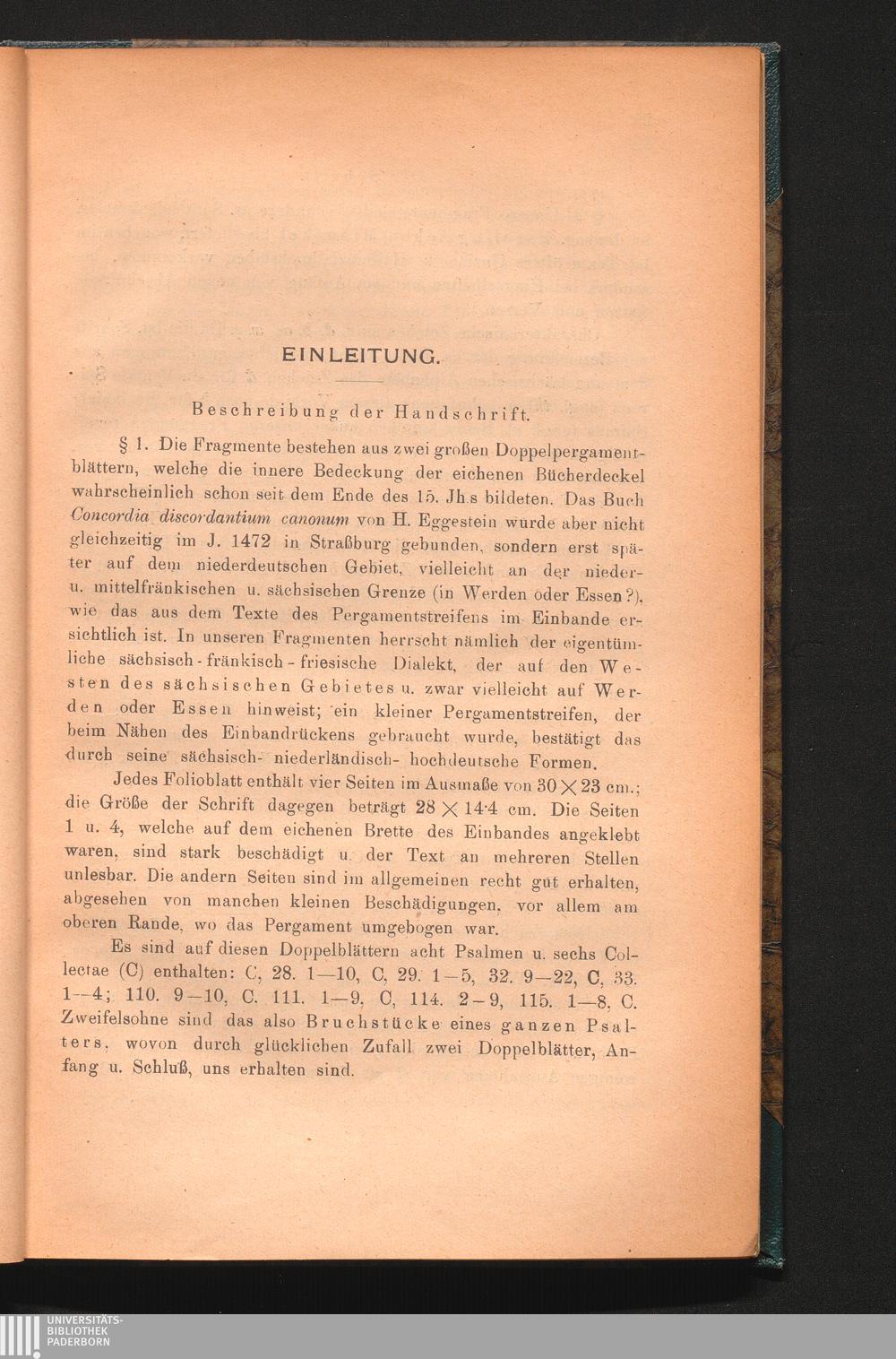 Beschreibung der Handschrift § 1