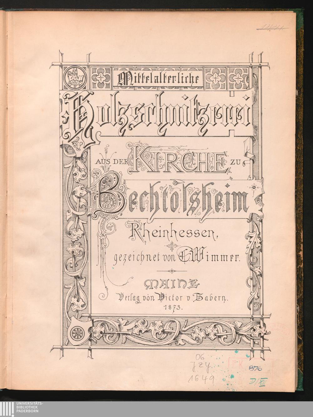 Mittelalterliche Holzschnitzerei aus der Kirche zu Bechtolsheim, Rheinhessen / gezeichnet von C. Wimmer