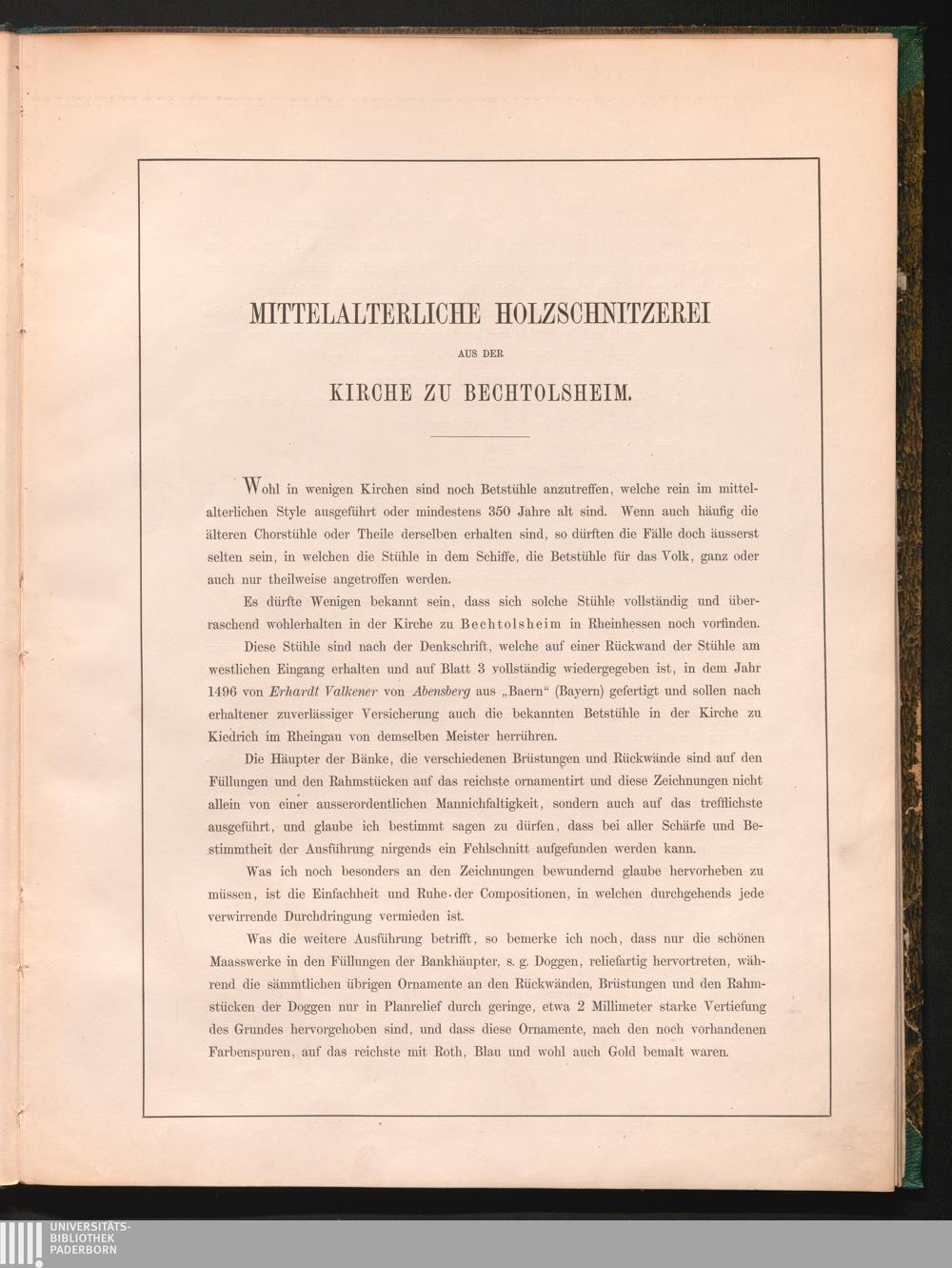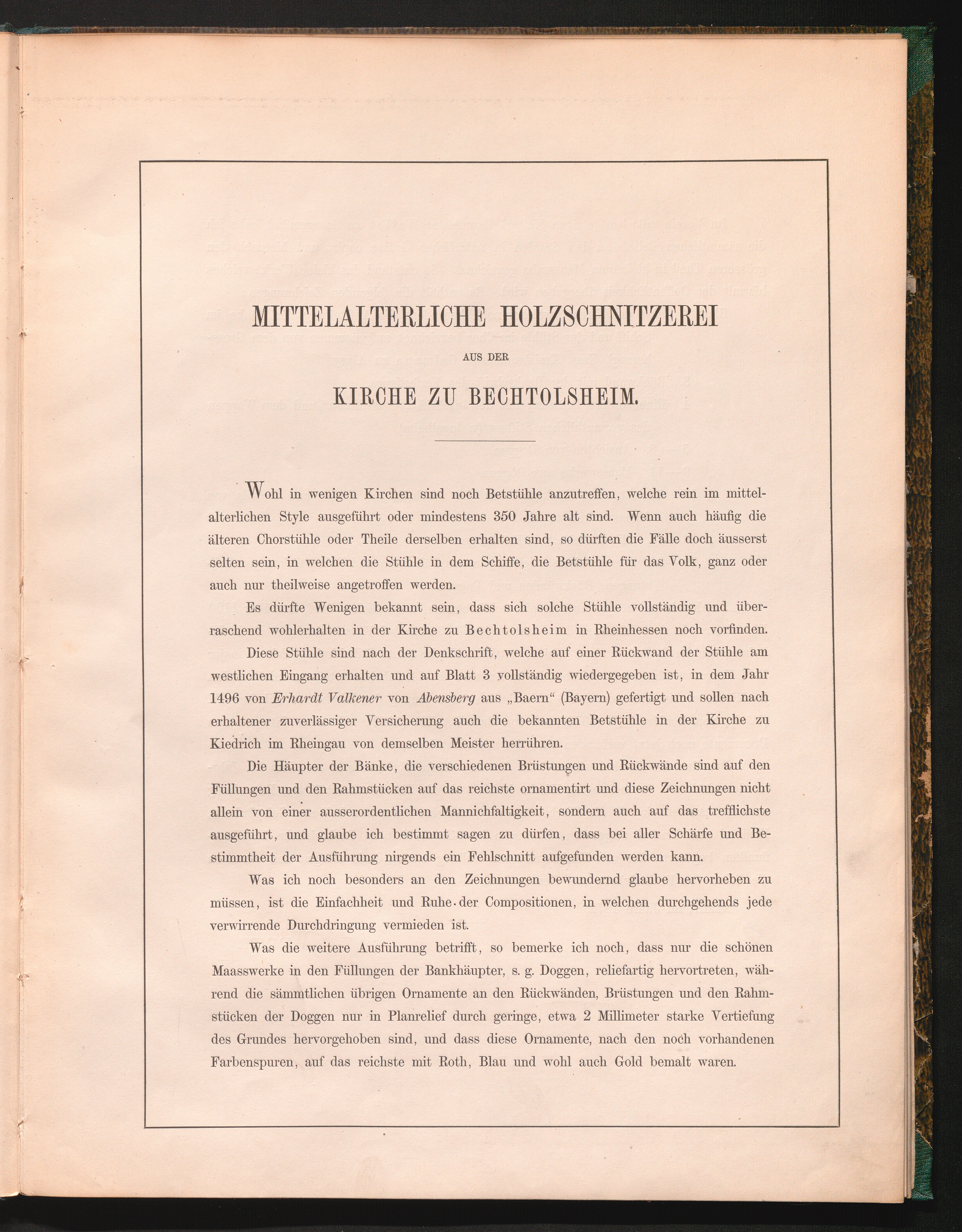 Mittelalterliche Holzschnitzerei aus der Kirche zu Bechtolsheim, Rheinhessen / gezeichnet von C. Wimmer
