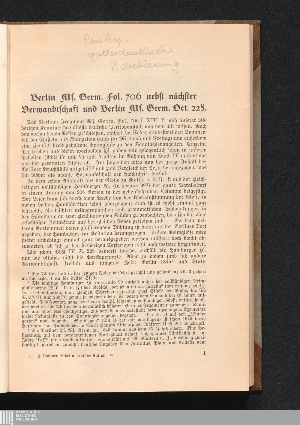 Neue Texte zur Bibelverdeutschung des Mittelalters : Mit zwei Bildtafeln und einem Anhang Perikopen-Schlüssel für zehn Heiligenmessen in deutschen Quellen / Herausgegeben in Gemeinschaft mit Arthur Thomas Hatto, Fritz Jülicher, Willy Lüdtke und Ludwig Wolff von Hans Vollmer