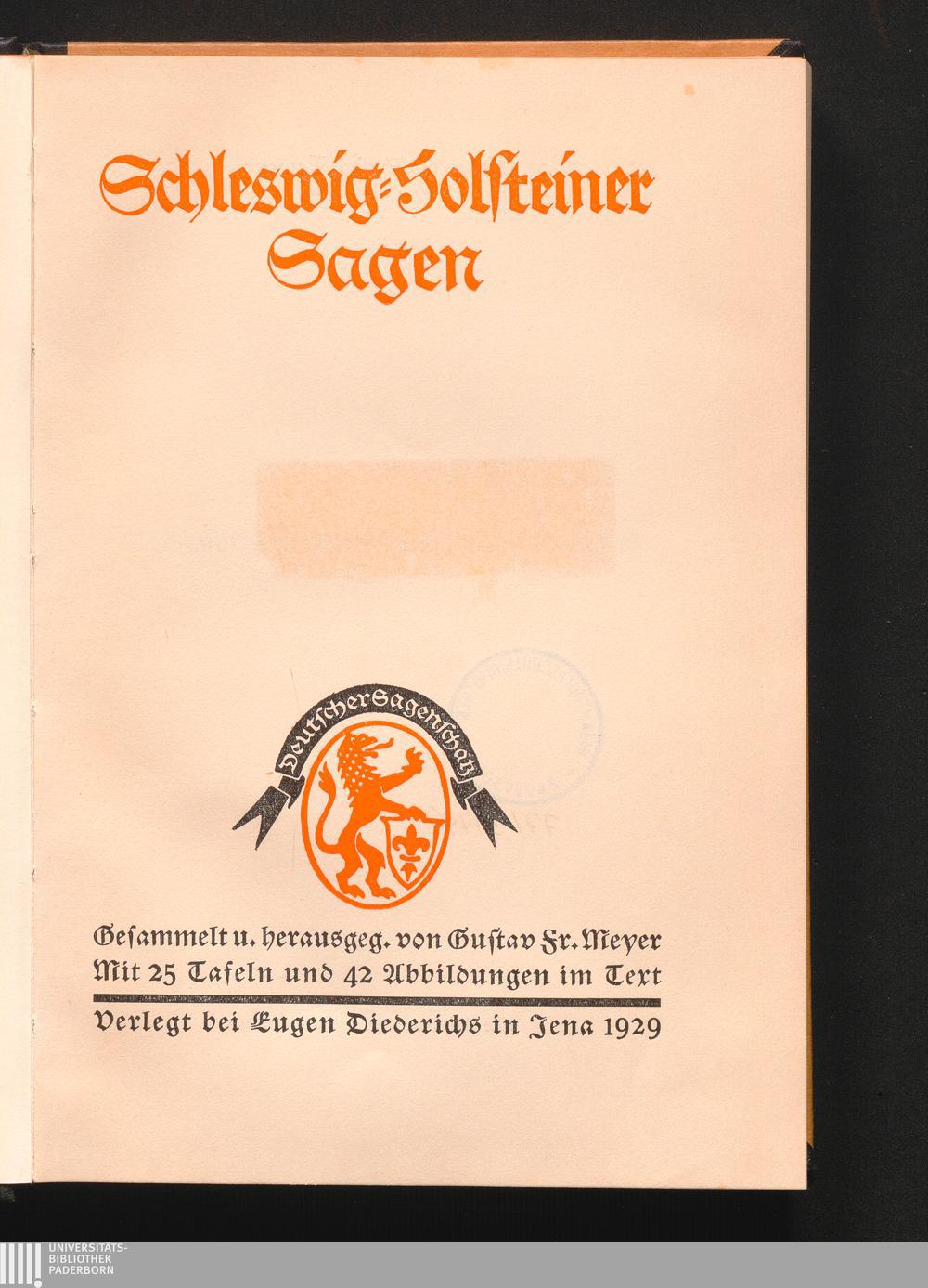 Schleswig-Holsteiner Sagen : mit 25 Tafeln und 42 Abbildungen im Text / ges. und hrsg. von Gustav Fr. Meyer